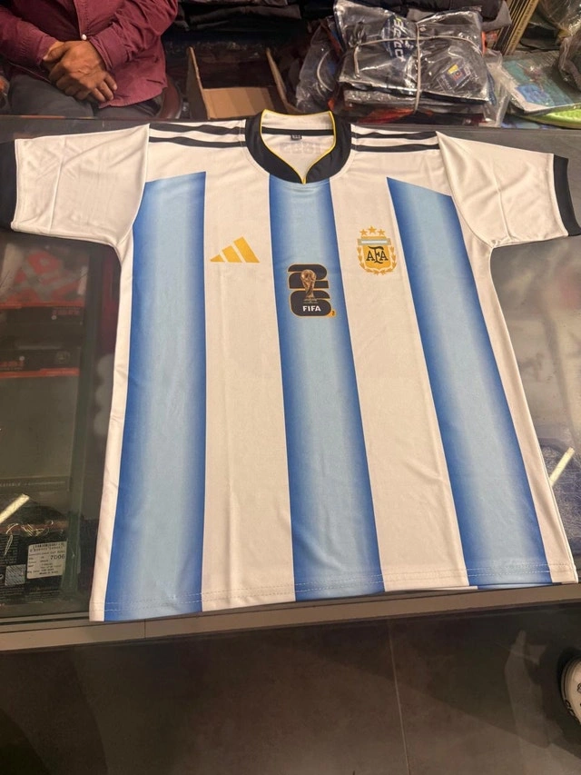 This is an Adidas Messi jersey in good condition, featuring the classic Argentina national team colours and design. Perfect for any football fan or collector! Size is Large. The item is used but has been well taken care of. Features: Adidas brand, Messi name and number, Argentina colours. Get this jersey now and show your support for Messi and Argentina! If the ad is up, it's available!