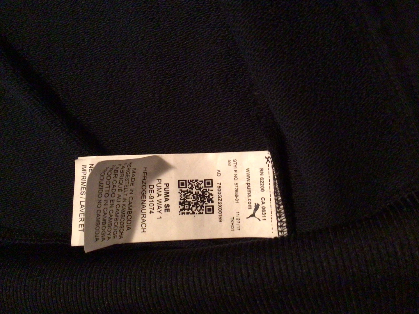 This is a Puma T7 track jacket. It's an original, brand new, never worn jacket of an iconic design. It's black with white stripes. Fully zipped including pockets. High quality comfortable fabric. Size L.