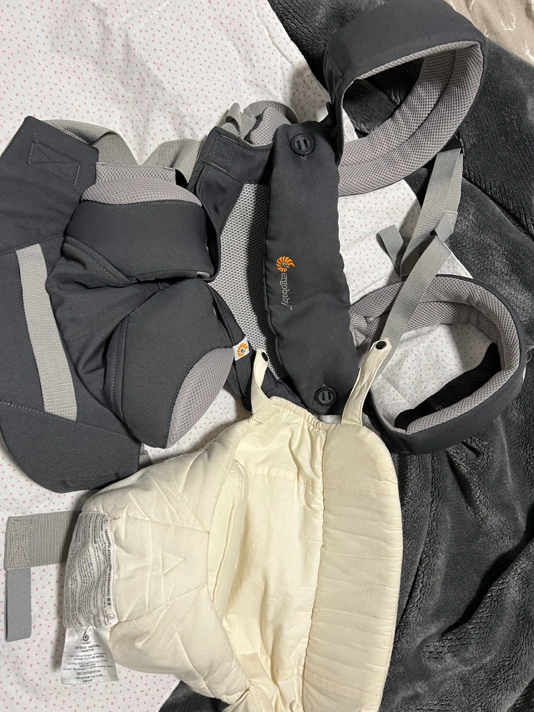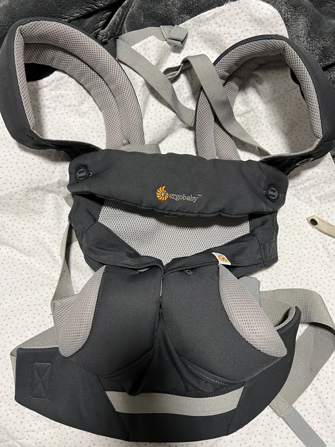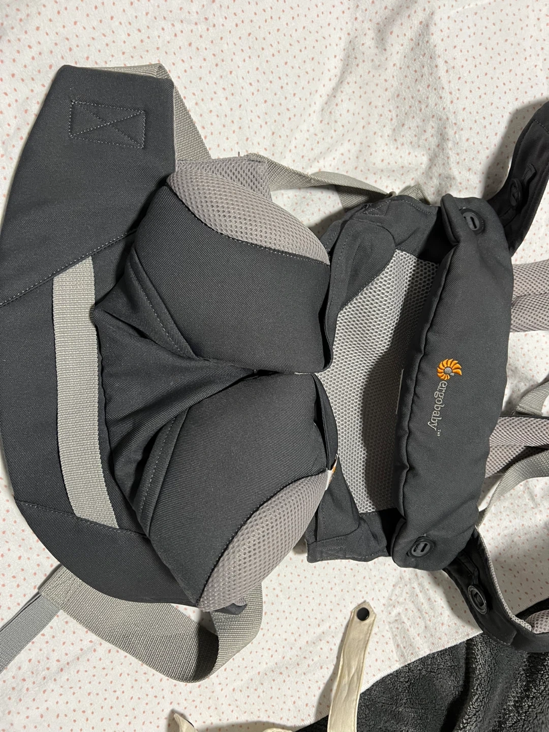 Selling a gently used Ergobaby carrier in grey! This carrier is super comfortable and makes carrying your little one a breeze. Perfect for errands, walks, or just keeping your baby close while you get things done around the house