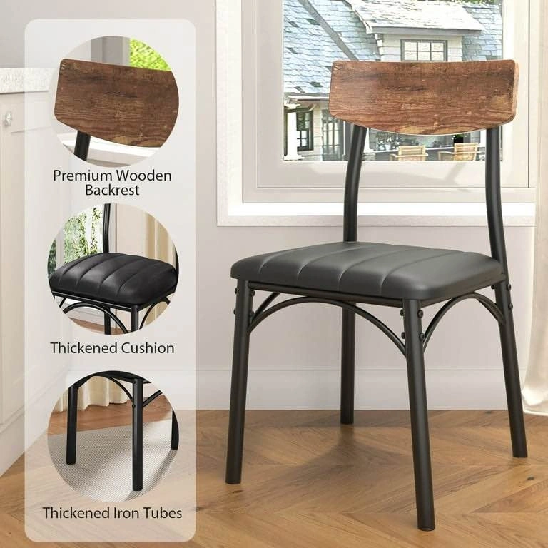 Dining Chairs Set of 4 – PU Leather Rustic Kitchen Chairs