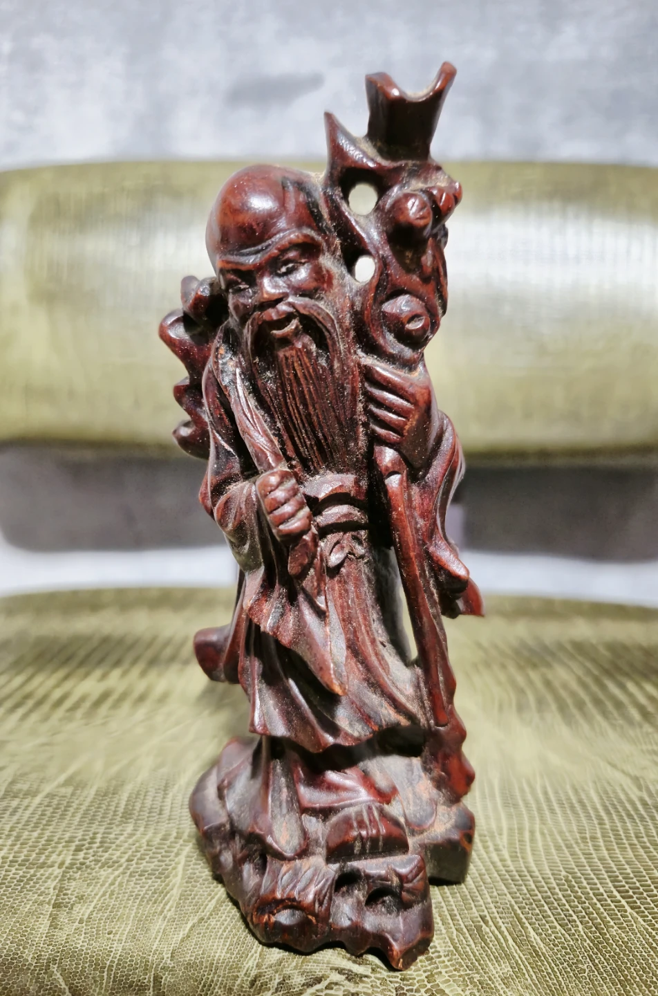 Rose Wood Carving Of Shou Lao