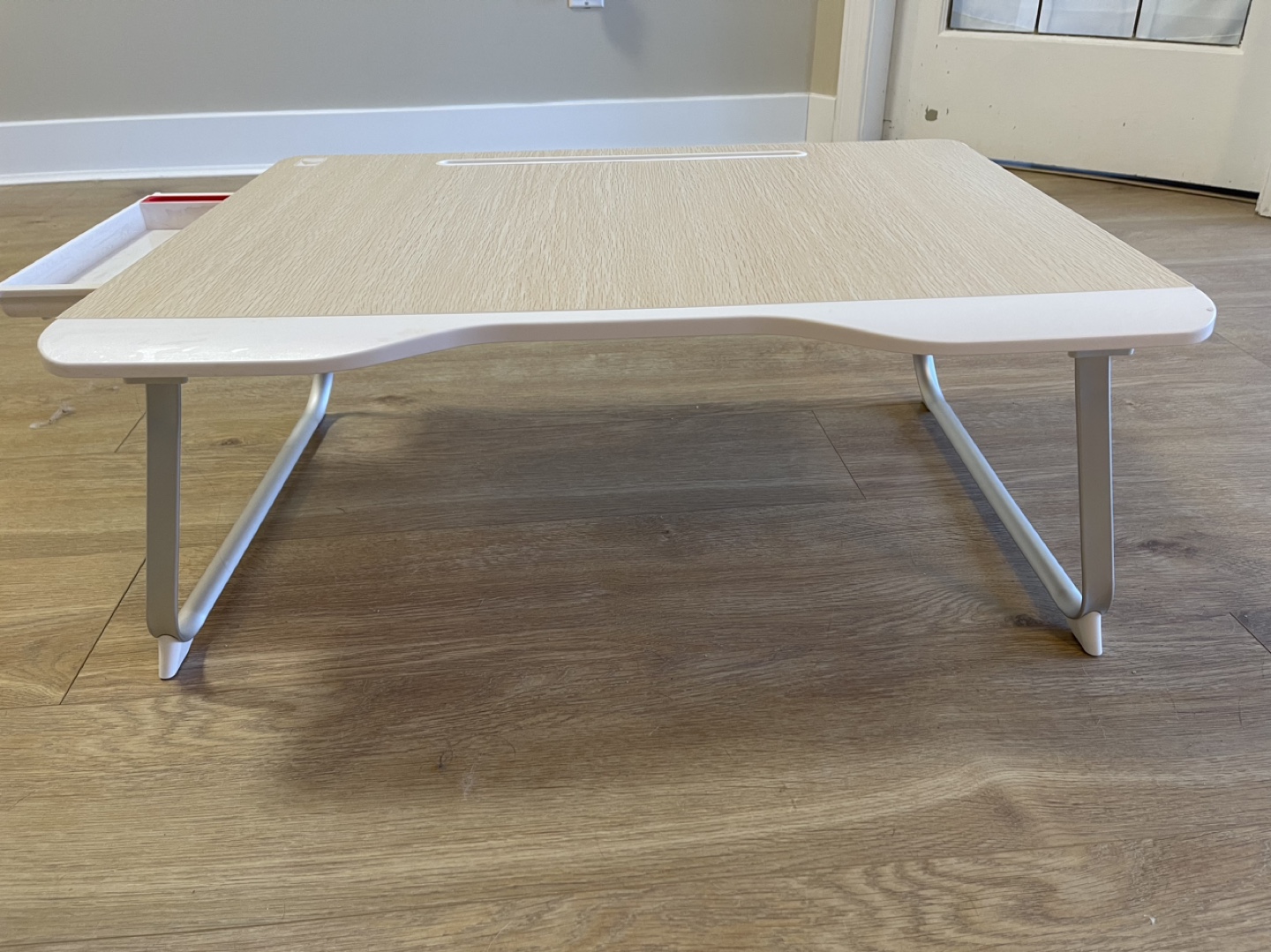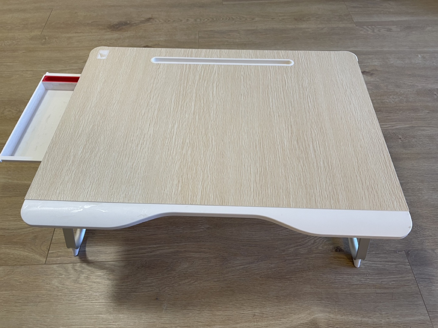 this foldable laptop table with extra storage room for you to store little things, such as pens, cables, phones. Not only keep your desktop neat, but also make things are easy hand reach.