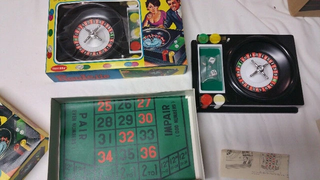 Here we have 2 very nice vintage battery operated roulette. Made in Hong Kong these are brand new. Asking $50 for the pair. If interested please contact Michel at 613-709-3013. Thank you