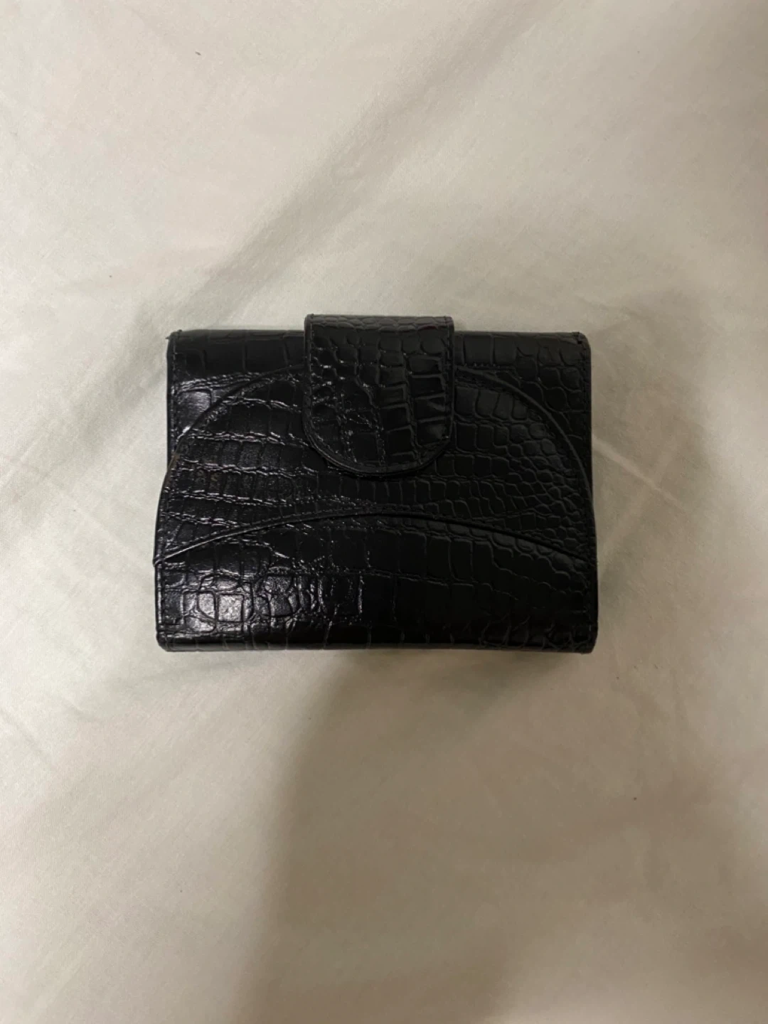 Black Croc Embossed Tri-Fold Wallet