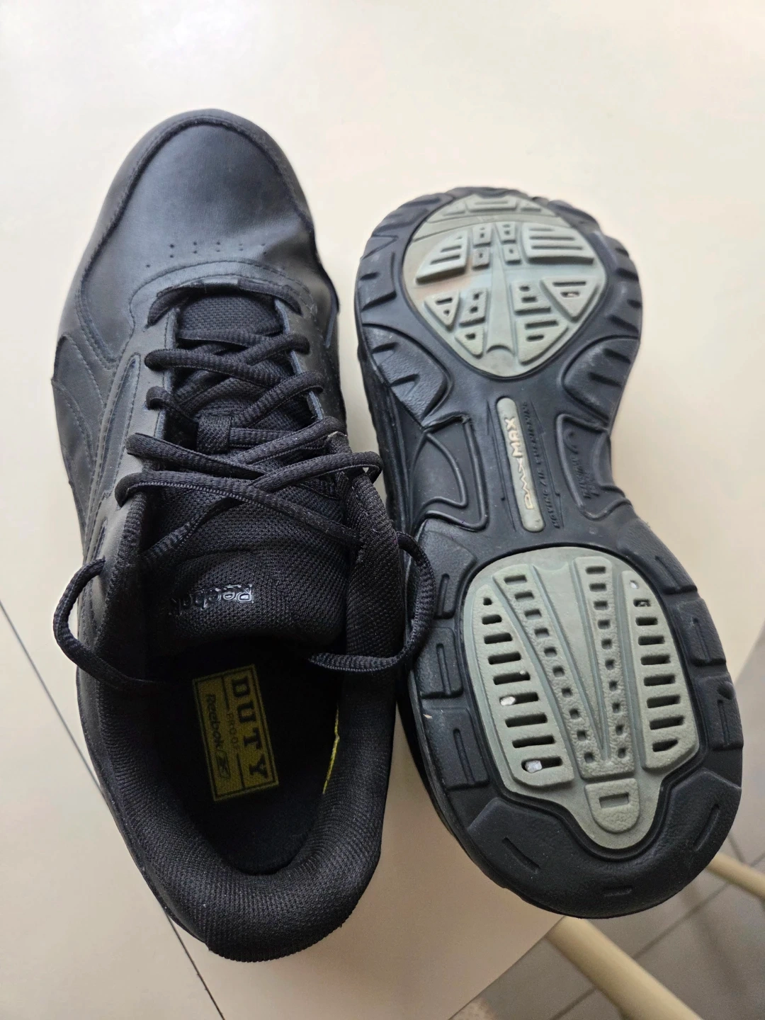 Reebok size 9.5 2E wide Duty black leather work shoes. Almost NEW . They feature a durable leather upper and a cushioned sole for comfort. These shoes are designed for long shifts and offer reliable support. Worn just a few times.