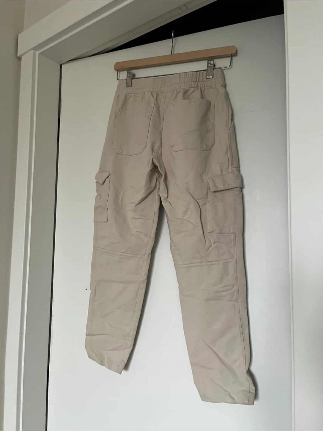 These Patagonia cargo pants are made with organic cotton. They're a size XS and feature a drawstring waist and multiple pockets. These pants are great for casual wear or outdoor activities!