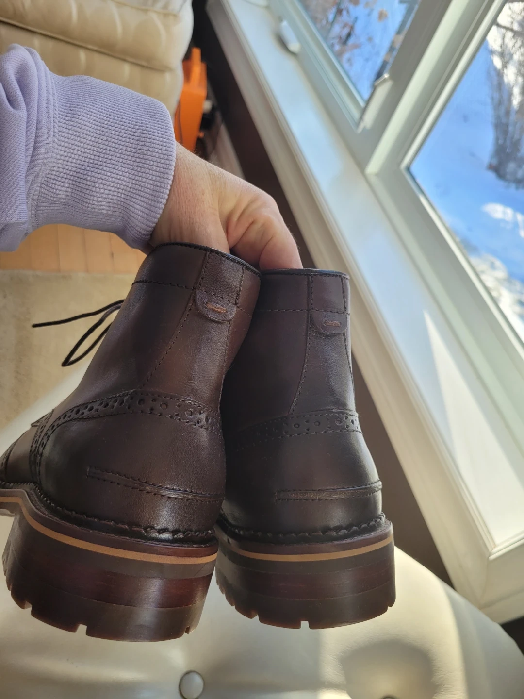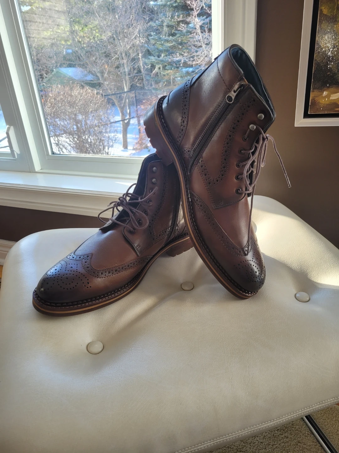 The leather has a nice, rich colour, and the wingtip detailing adds a touch of class, inside zipper.