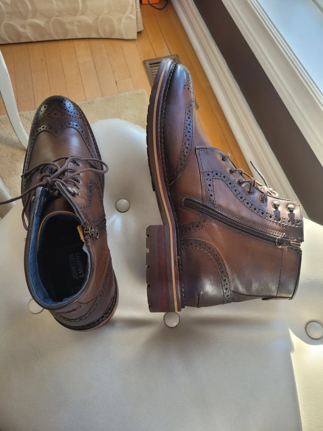 Practically New Johnston and Murphy brown leather wingtip boots. Sz 12