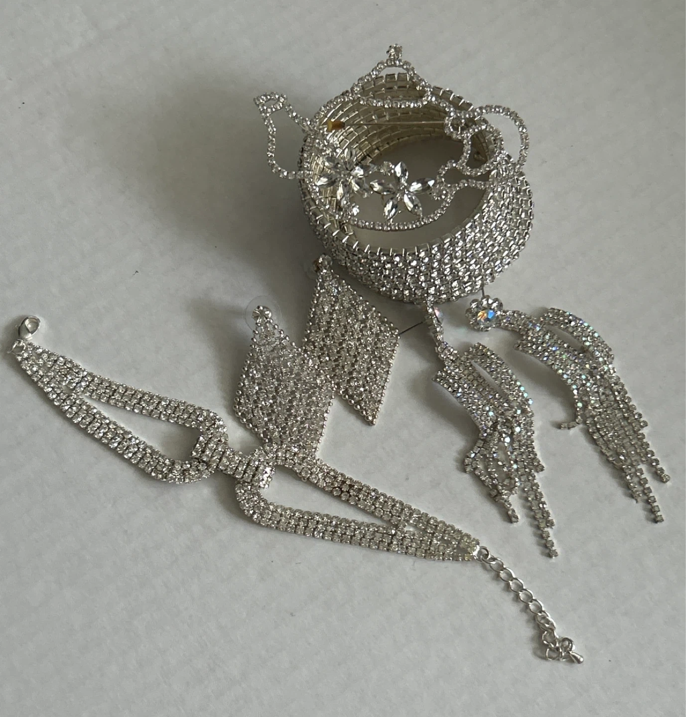 Rhinestone Jewelry Set - Bracelet, Earrings, Brooch & Necklace