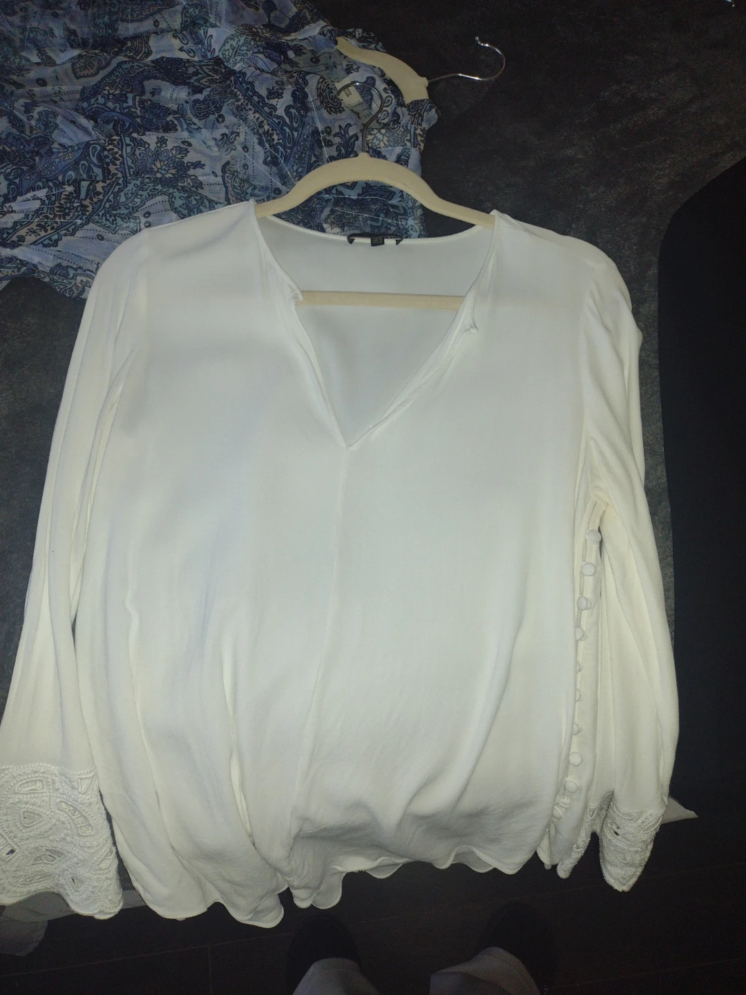 Buy & SellWhite Long Sleeve BlouseWhite Long Sleeve Blouse$7Selling a white long sleeve blouse. It features a v-neck and decorative cuffs. Perfect for a casual or dressy look!WHERE TO MEETCheck LocationView MapSELLERTeodora MocnikCooksville150 reviews0 chats·1 favorites·19 viewsSEND CHAT TO SELLERHi Teodora Mocnik! I’m interested in your listing.Hi Teodora Mocnik! I’m interested in your listing.Get the Karrot app to chatSign In to chat