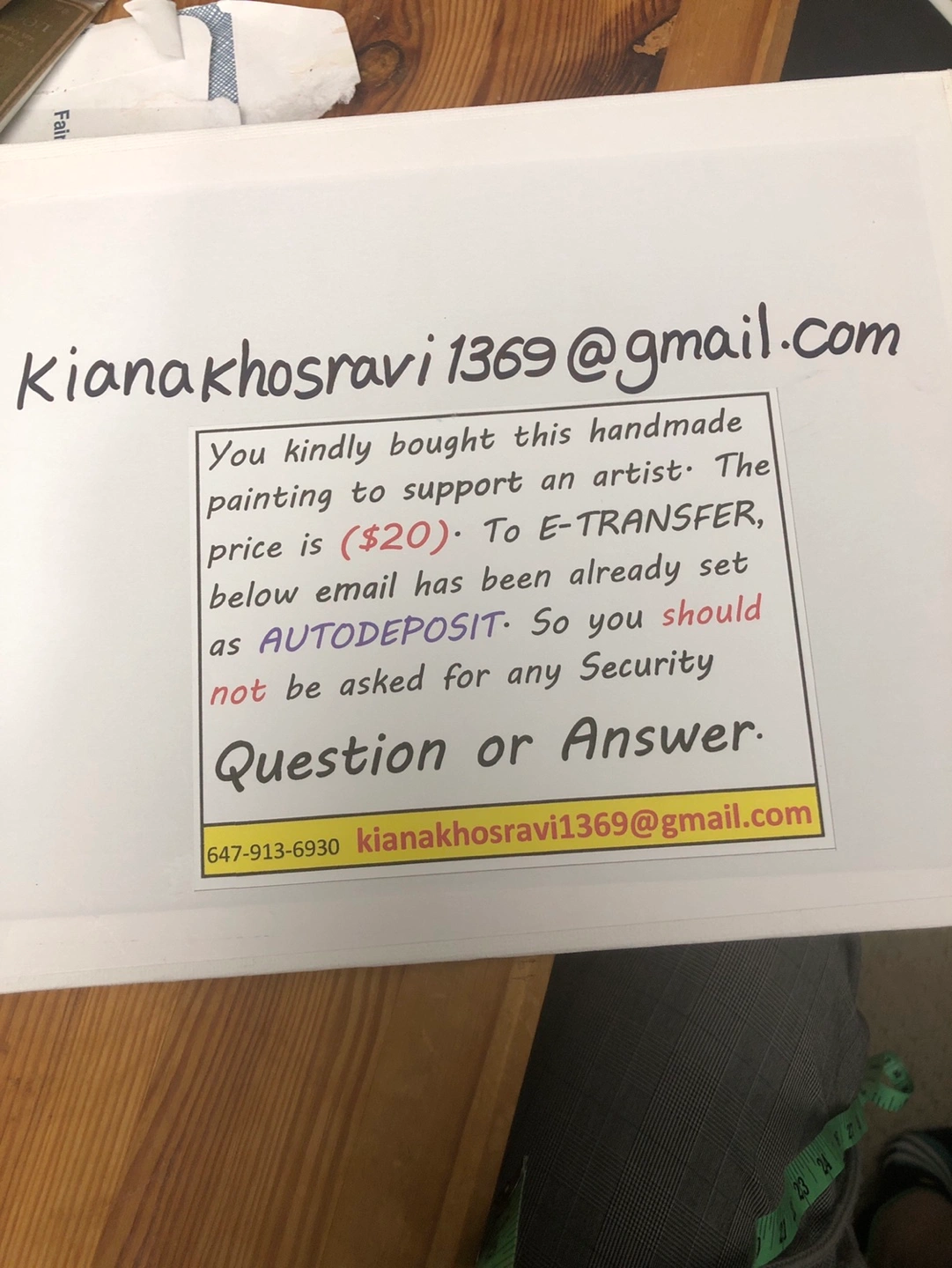 This picture I got from a guy sitting in wheelchair. He was selling in in the Ttc train. He told me that his wife drew it and the money is to support his family for living. Hence, u may pick up this picture and donate to him.
