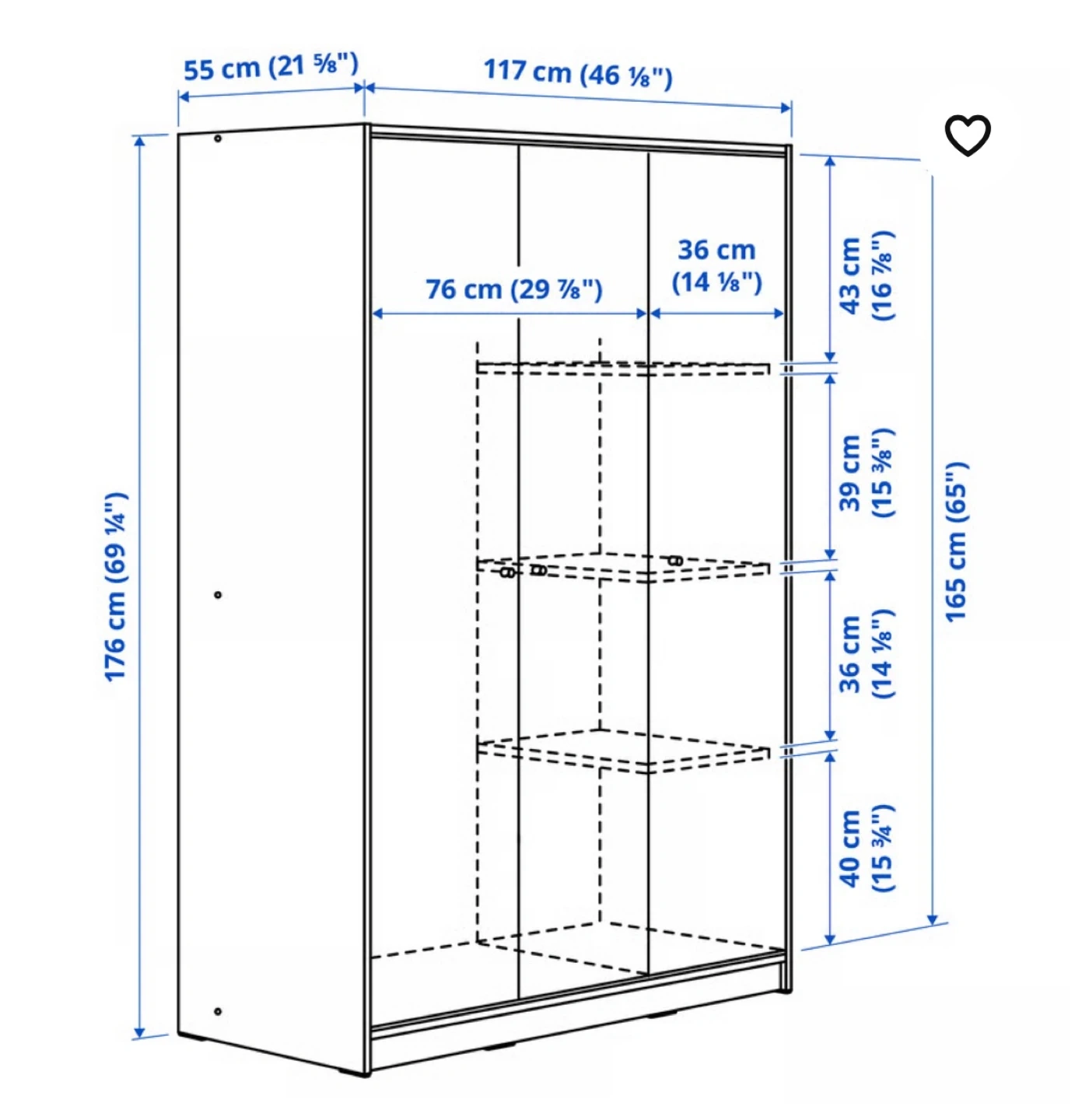 Looking to sell this IKEA Kleppstad wardrobe in white. It comes with three doors and offers ample storage space. Dimensions are 46 1/8x69 1/4 ". Retails for $199.99