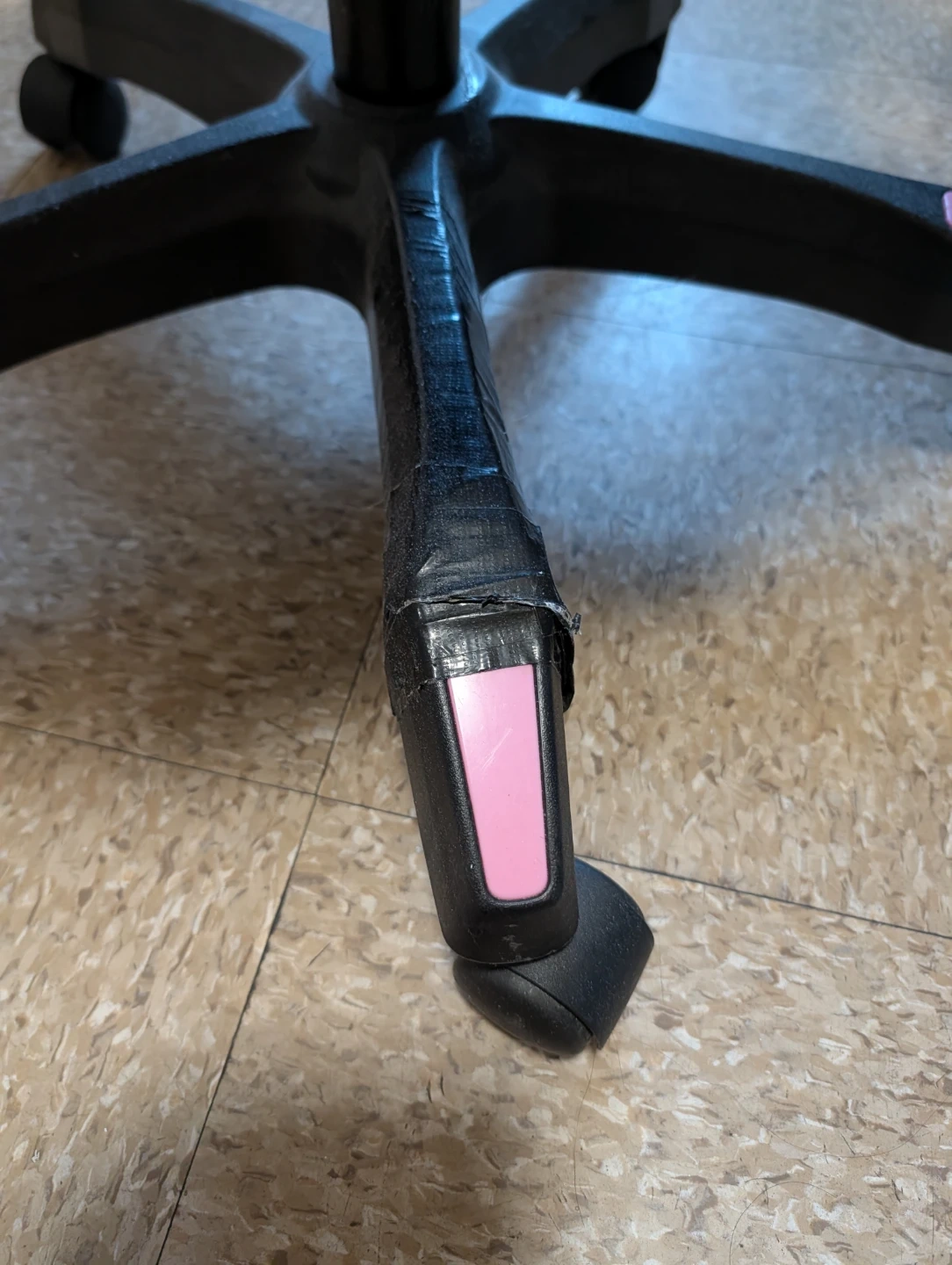 One of the leg fixed with duck tape.