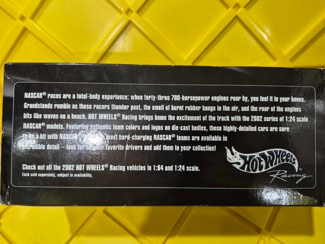 Relive the thrill of NASCAR with this 2002 Hot Wheels Racing #10 Johnny Benson 1/24 scale diecast car. This collectible is in excellent condition, encased in its original packaging, capturing the spirit of the track and the legacy of a racing icon. It's a great addition to any collection, showcasing vibrant colours and authentic detailing. The car is used and has been kept in its original packaging. Cash accepted.