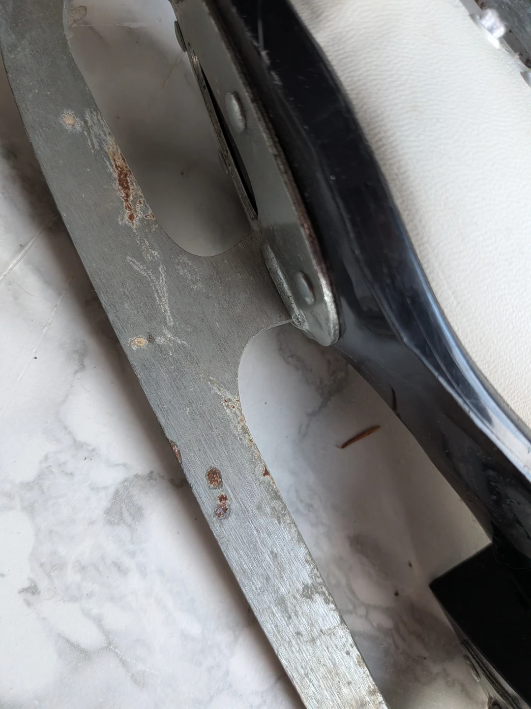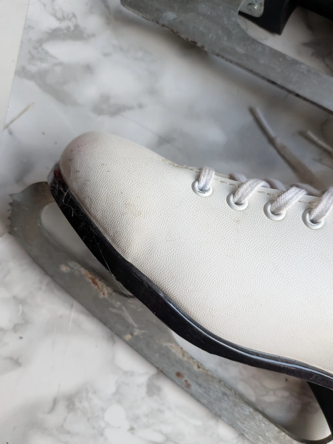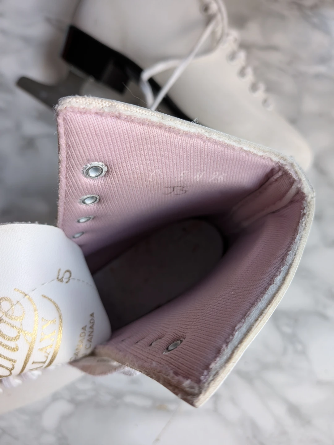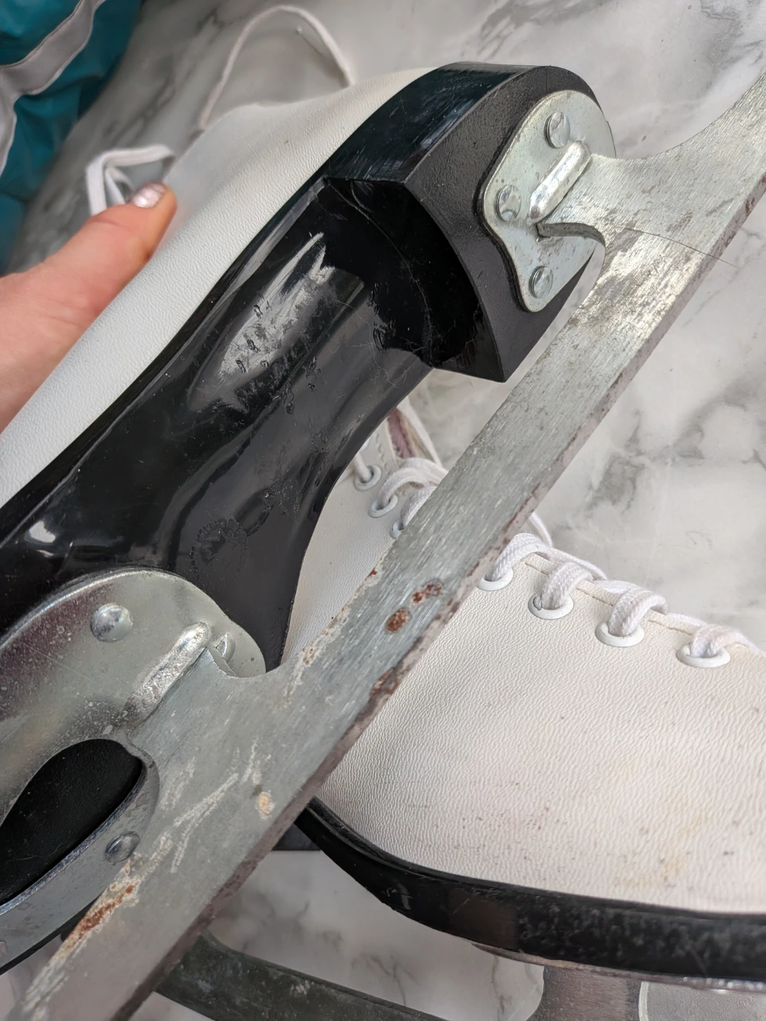 Selling a pair of white figure skates. They have some wear and tear, especially some rust on the blades. Still lots of life left in them though!