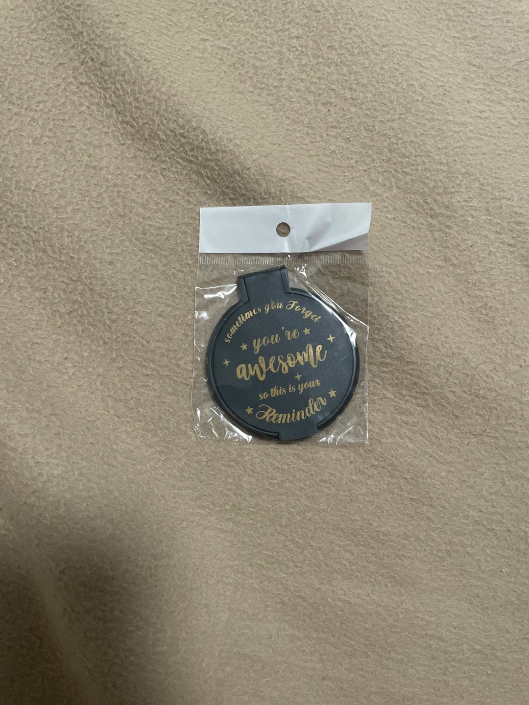 This round mirror features the uplifting message, 'sometimes you Forget you're awesome, so this is your Reminder.' It's a great little item to keep or gift. Perfect for a quick glance to boost your mood!
