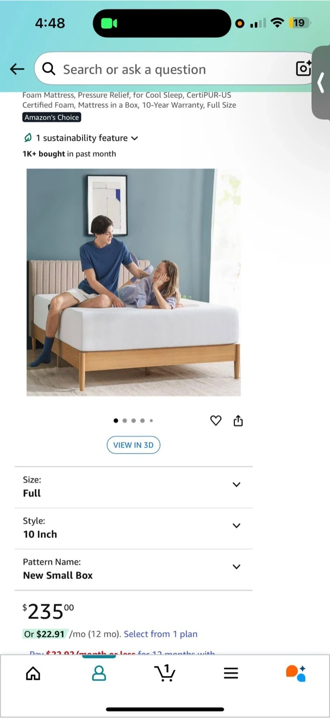 Selling a Zinus Full 10-Inch Green Tea Cooling Gel Memory Foam Mattress! It features pressure relief for cool sleeping, and is CertiPUR-US certified foam! It also comes in a box with a 10-year warranty. Originally bought for $235
