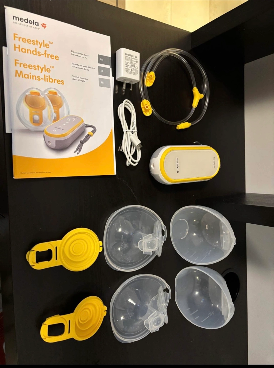 Comes with everything you need. A great way to make your pumping sessions a bit easier. Includes the breast pump, breast shields, tubing, and power adapter.99% clean . at’s Included 1× pump motor unit 1× tubing 2× collection cups (shells) 2× silicone membranes 2× 21 mm breast shields 2× 24 mm breast shield