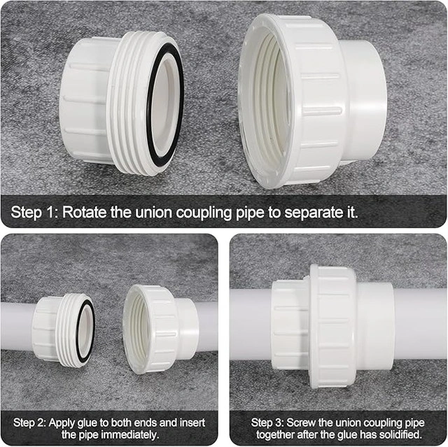 2 Pack PVC Union Pipe Fitting, 2 inch PVC Slip Union Coupling