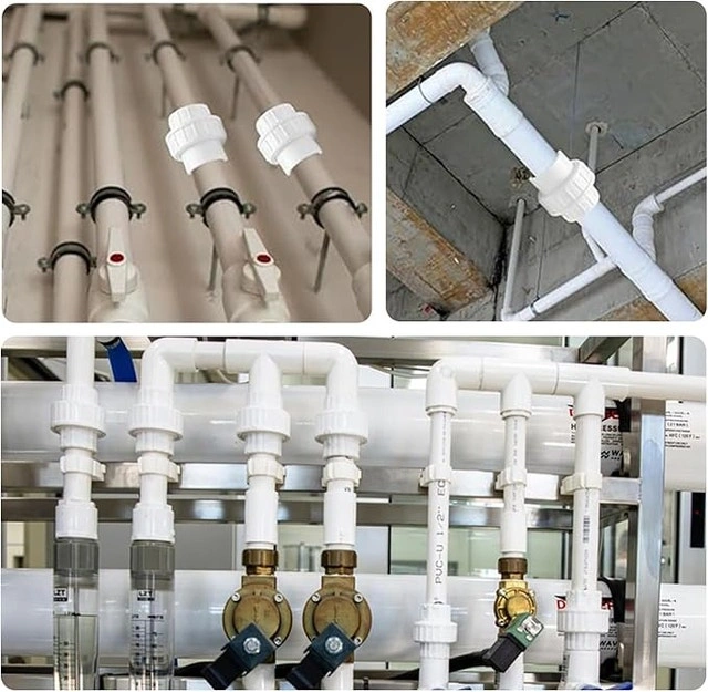 These are new, high-quality PVC union fittings with EPDM O-rings for a great seal. They're easy to connect and install with primer and adhesive. Perfect for irrigation, pools, and cold water pipes, both indoors and out. For sale by owner.