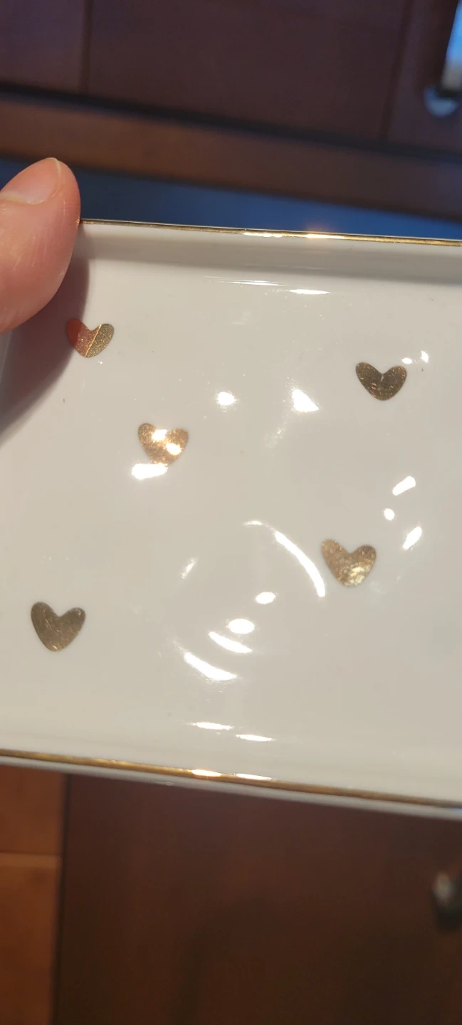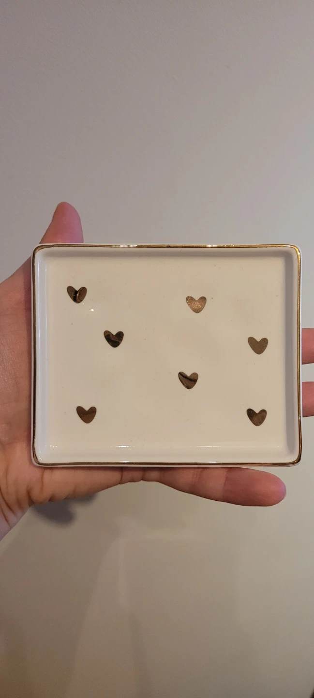 NEW White Trinket Dish with Gold Hearts