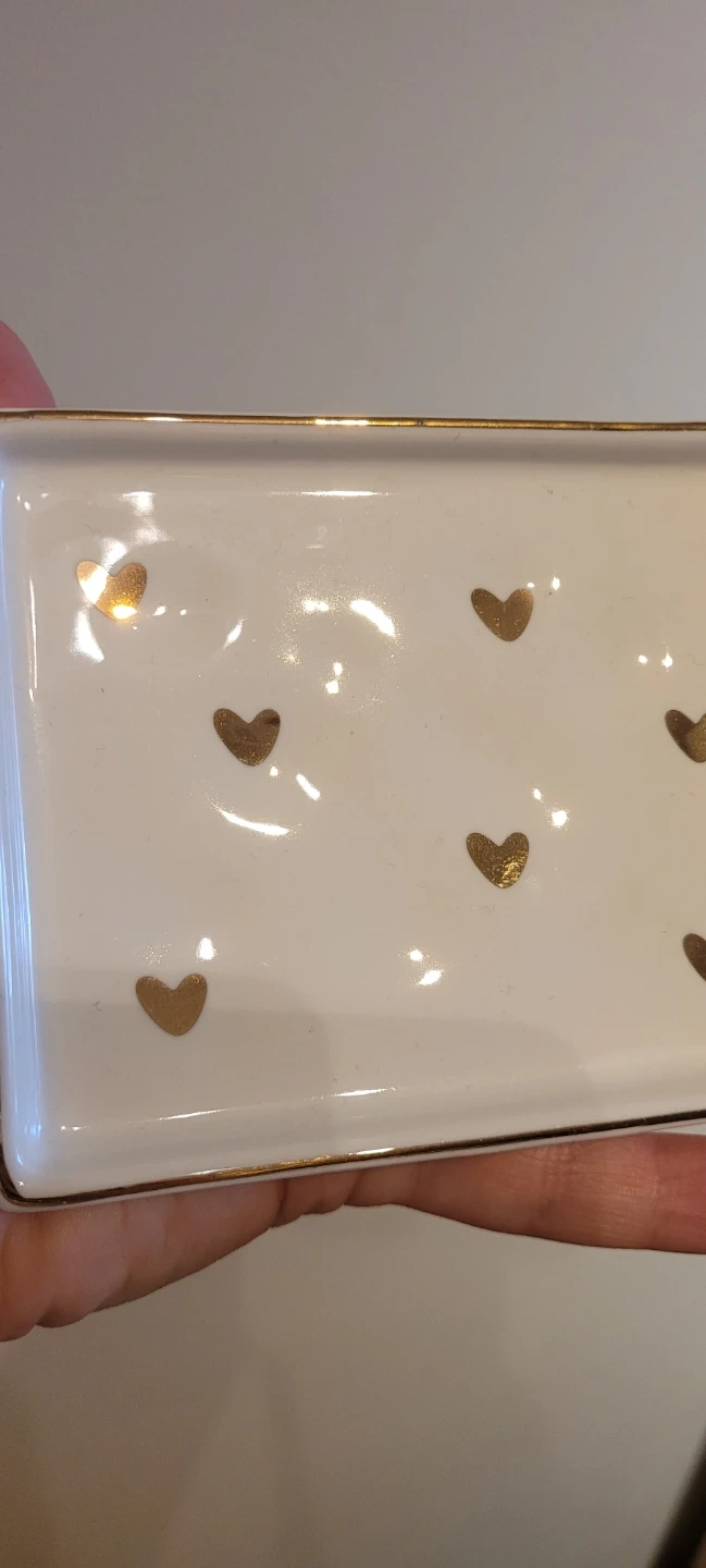 NEW White Trinket Dish with Gold Hearts