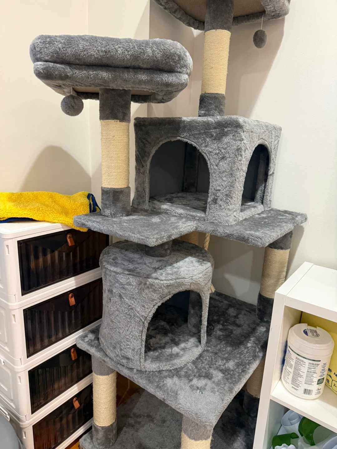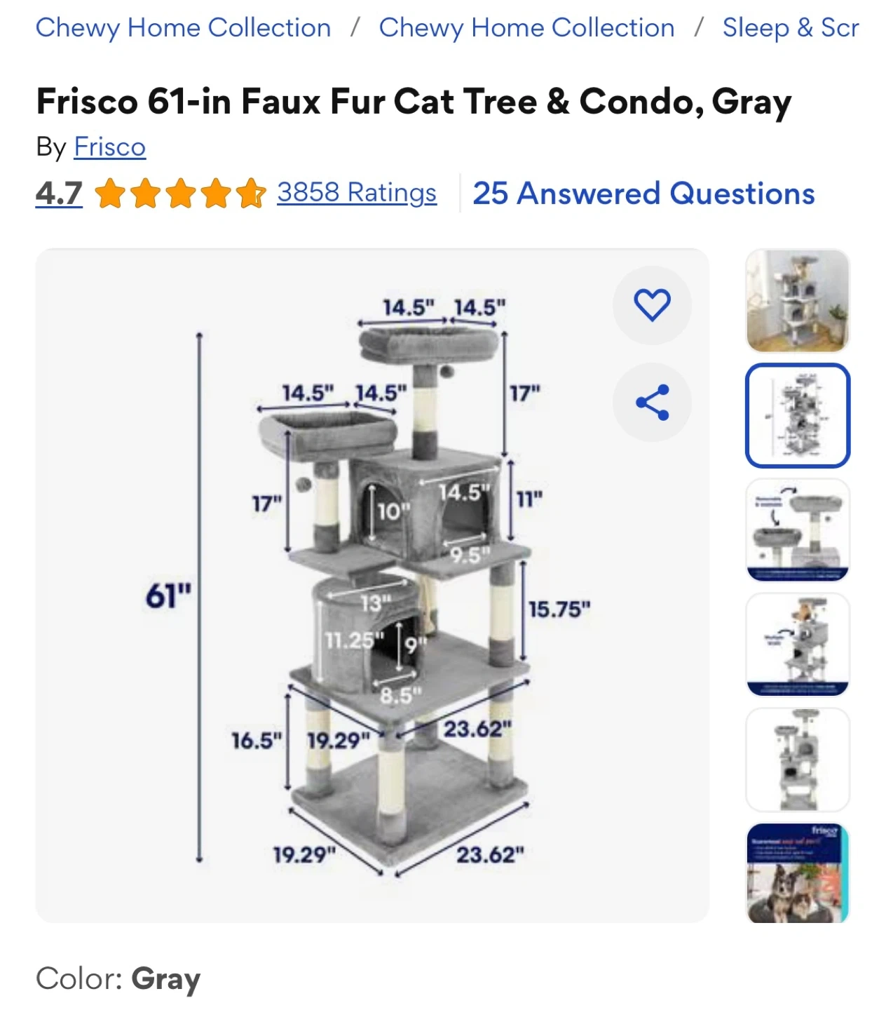 Frisco 61-in Faux Fur Cat Tree & Condo, Gray