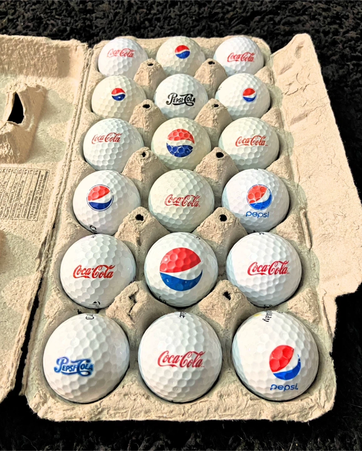 18 Coca-Cola Coke & Pepsi branded logo golf balls.