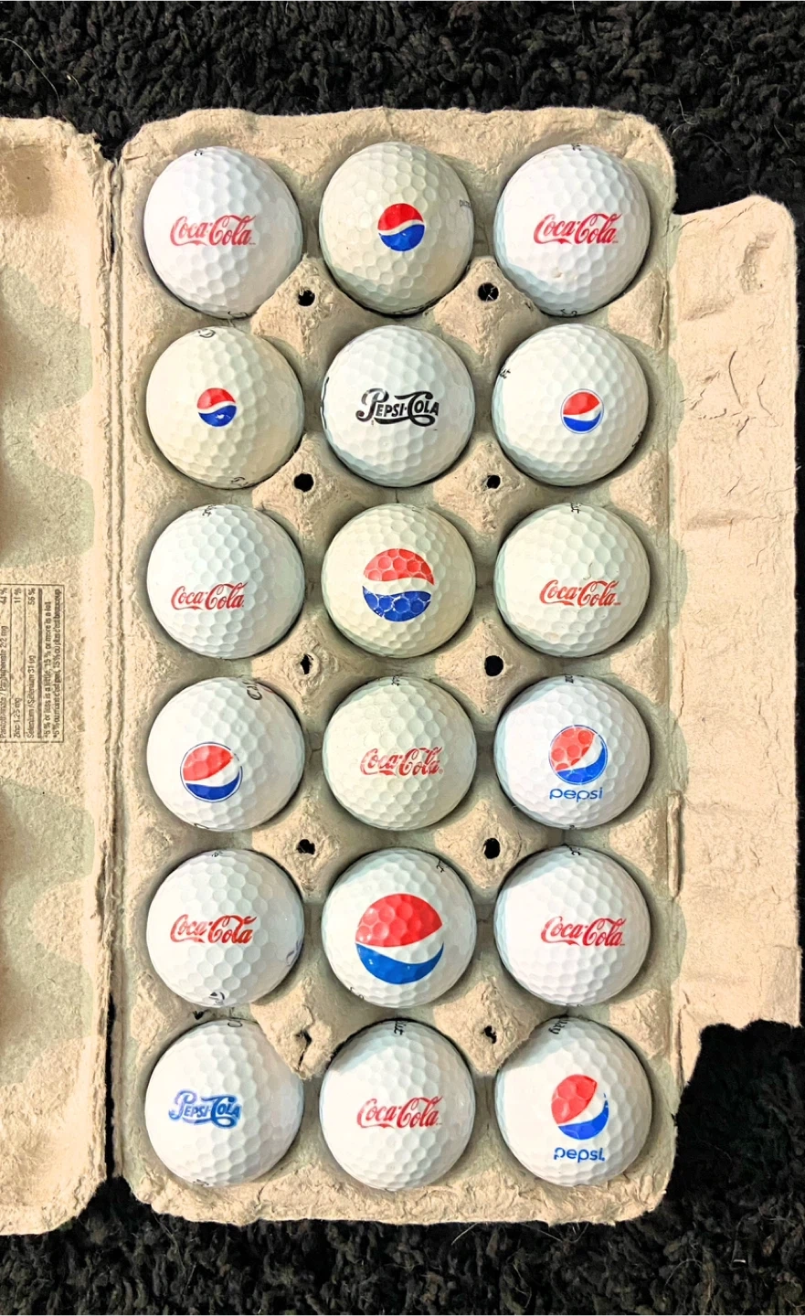 18 Coca-Cola Coke & Pepsi branded logo golf balls.