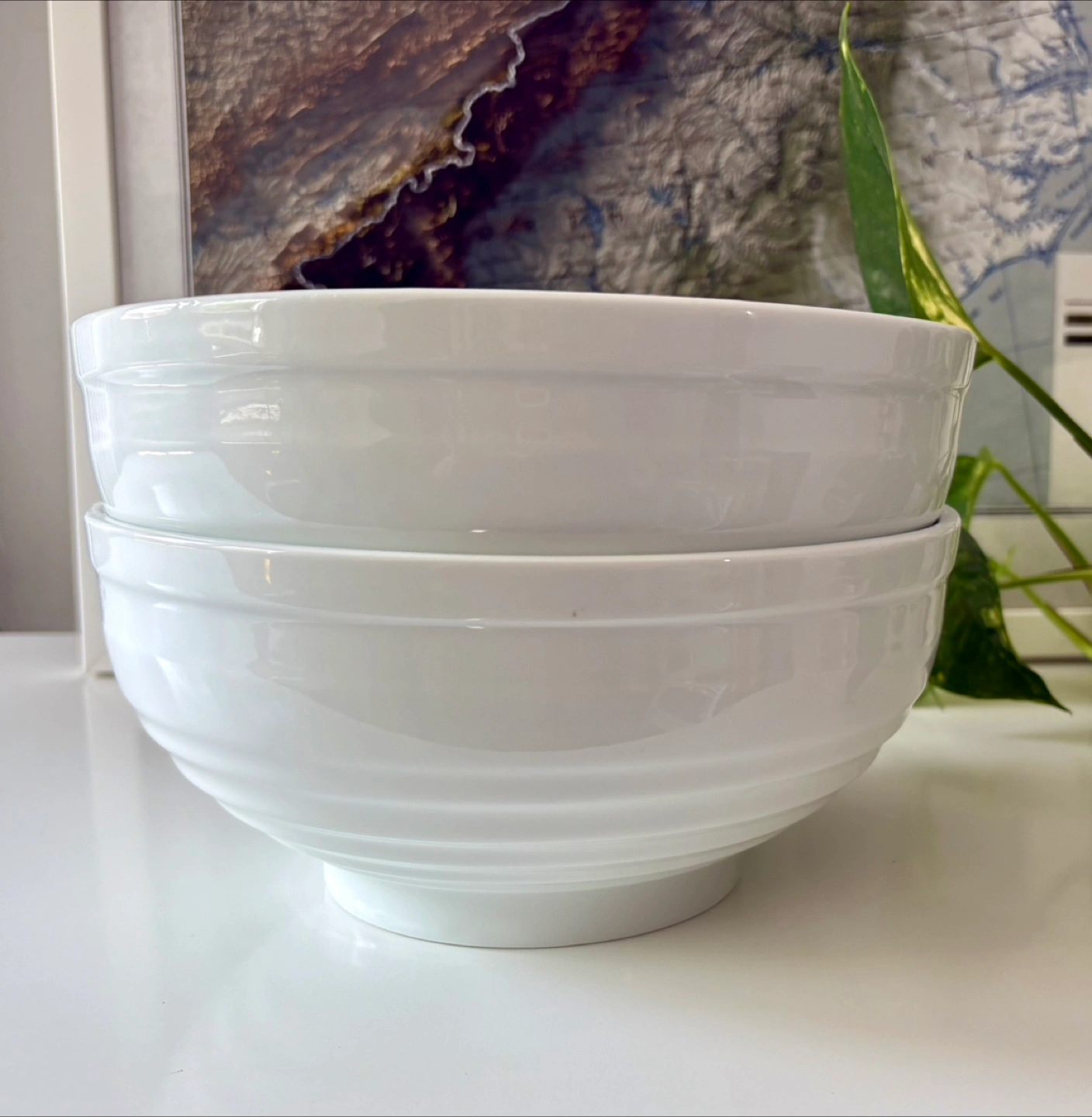 Selling a pair of white ceramic bowls in great condition! They measure approximately 8 inches in diameter and stands about 4 inches tall. Perfect for pho or ramen!