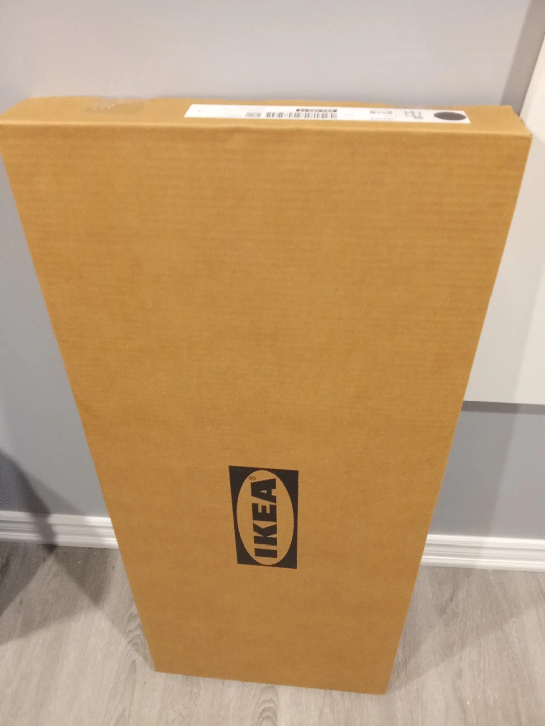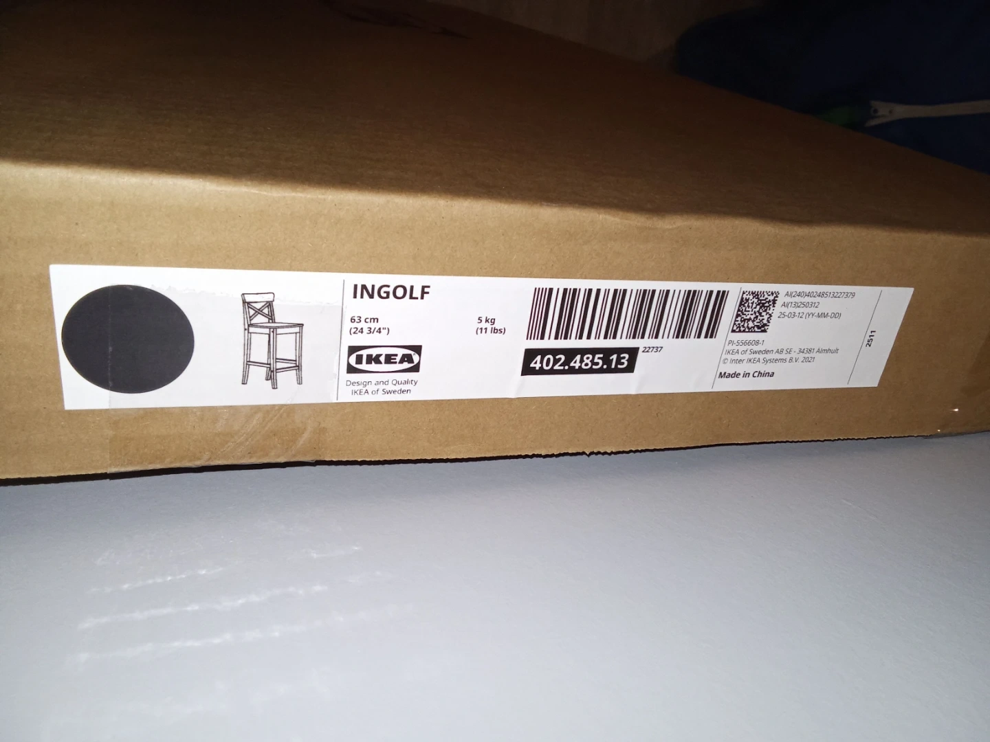 This is a dark brown IKEA Ingolf bar stool with a cross-back design. It measures 24 3/4" in height. The stool comes in its original box, ready for assembly.