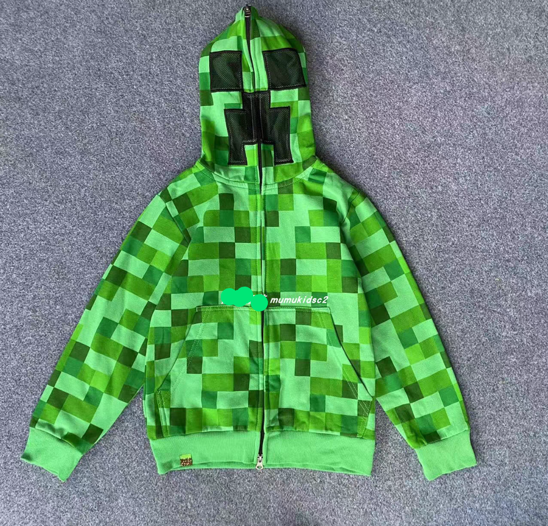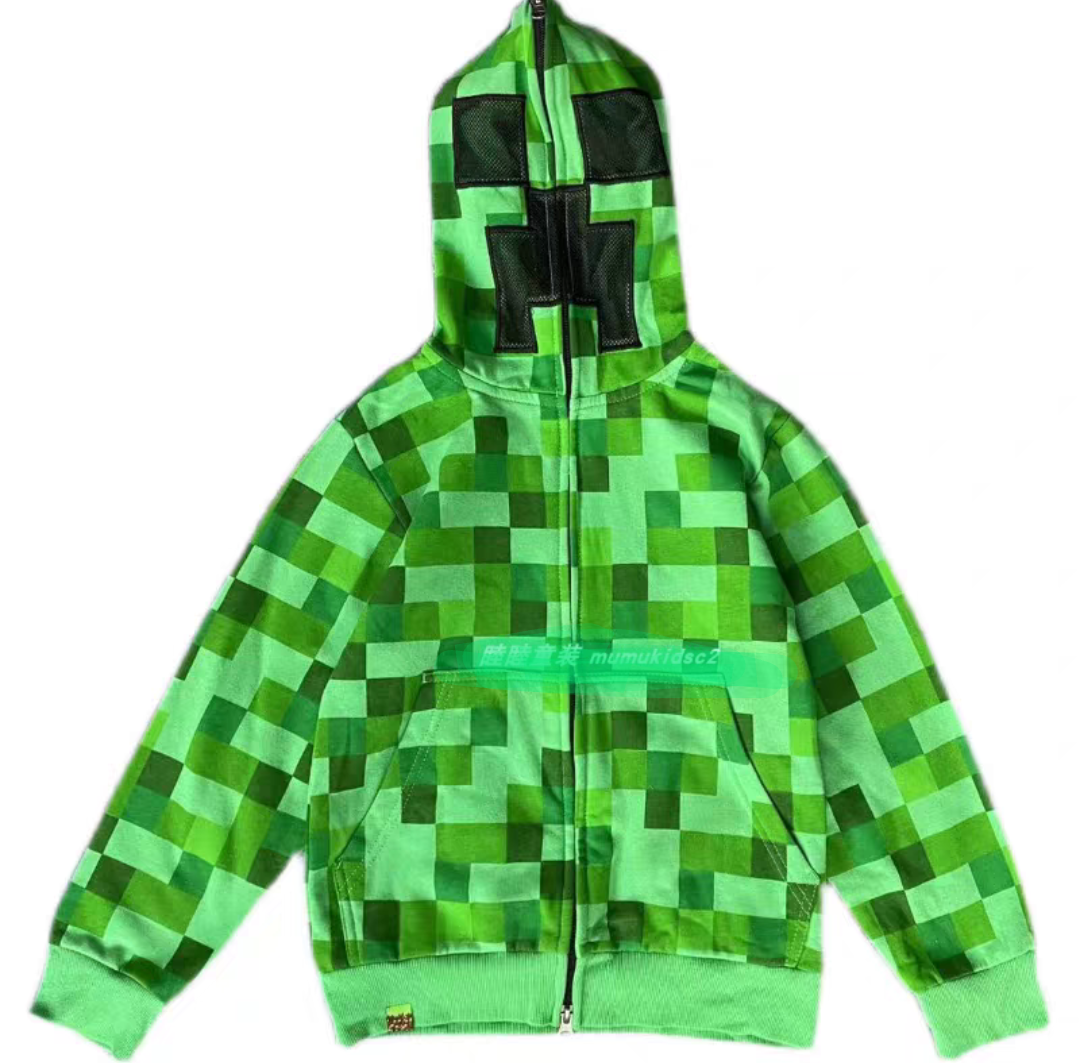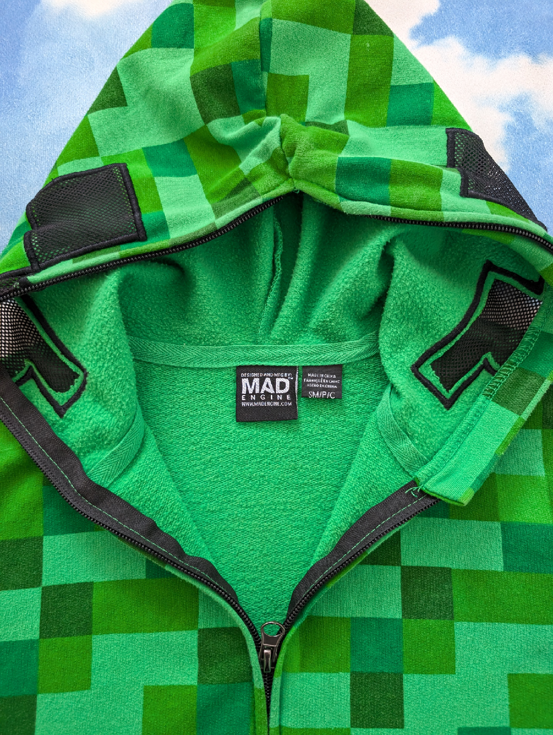 Minecraft Creeper hoodie for Minecraft fans, fully zip up to cover face with the creeper design with mesh around eyes, great for Halloween and daily wear.