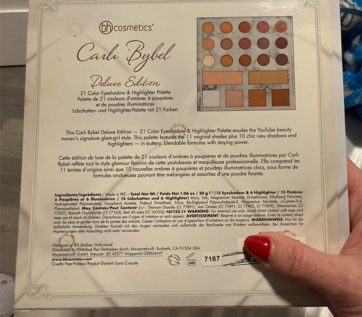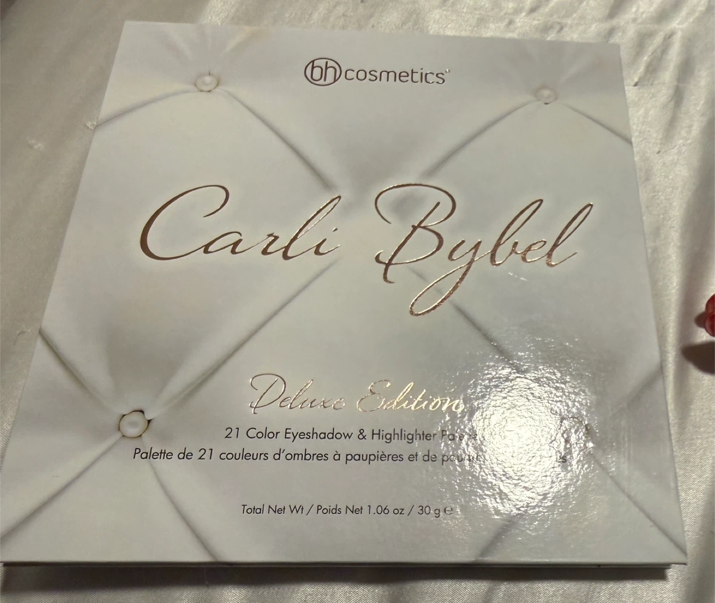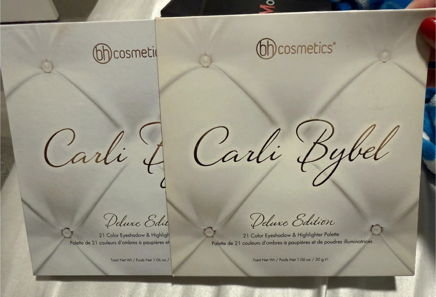 This is the BH Cosmetics Carli Bybel Deluxe Edition palette. It features 21 eyeshadow and highlighter shades with blendable formulas. It's perfect for creating a variety of makeup looks!