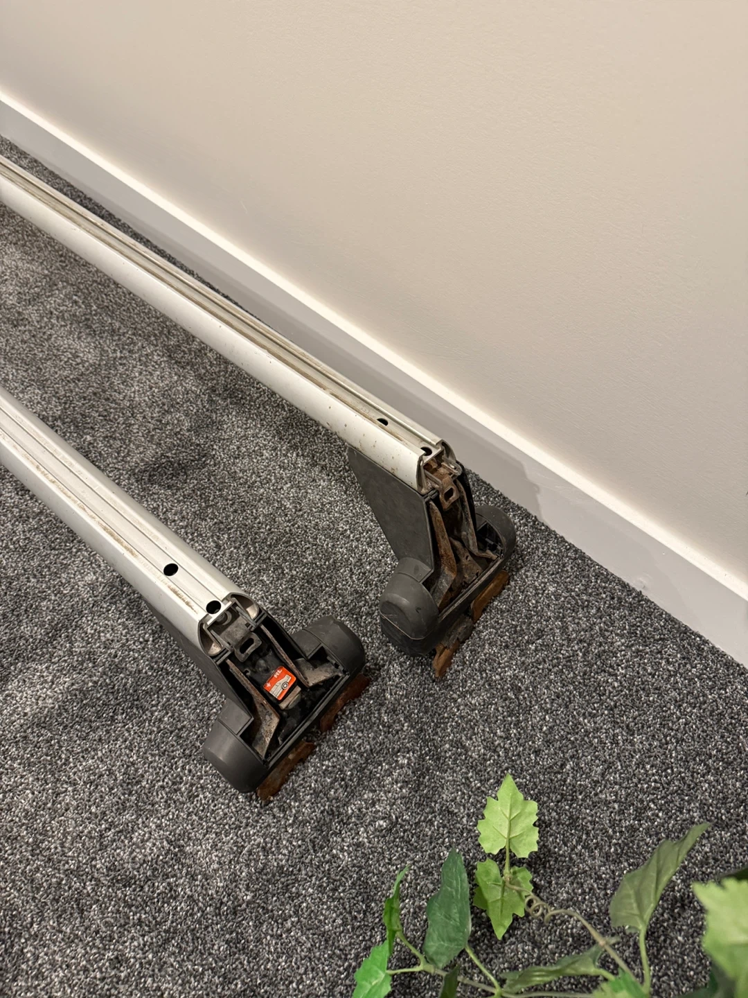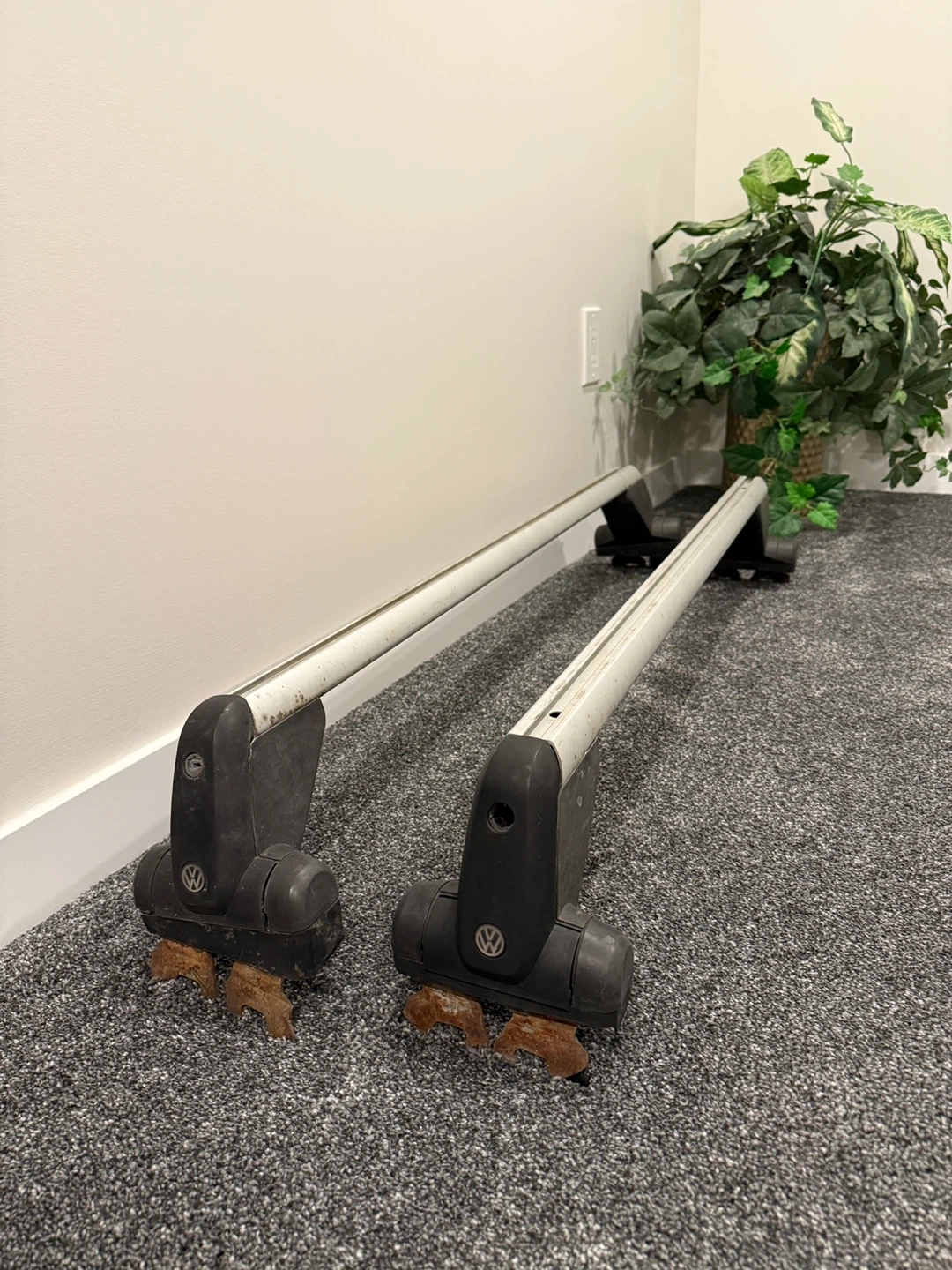 Volkswagen Mk4 oem roof racks, missing 2 end caps needs new lock cylinders if u chose to use the end caps, you can get the cylinders off amazon for 11$ and end caps off ecs tuning, ran them on my car no issues, obo