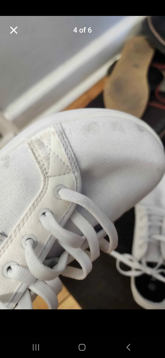 Pre-owned Vivobarefoot Primus Lite II sneakers. White canvas upper. Minimalist design. Some minor scuffs and marks. Size 38.
