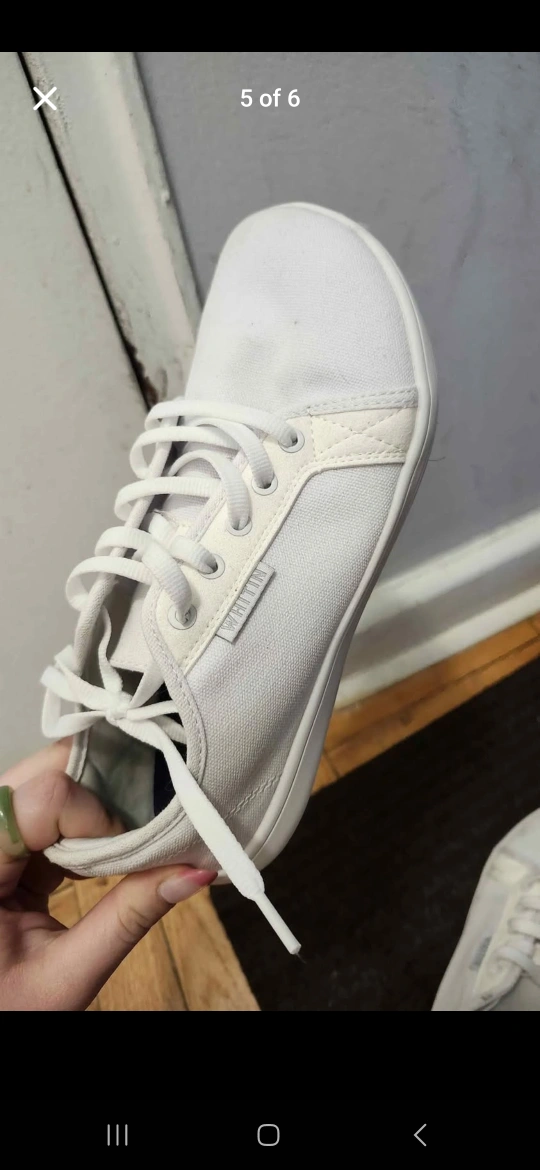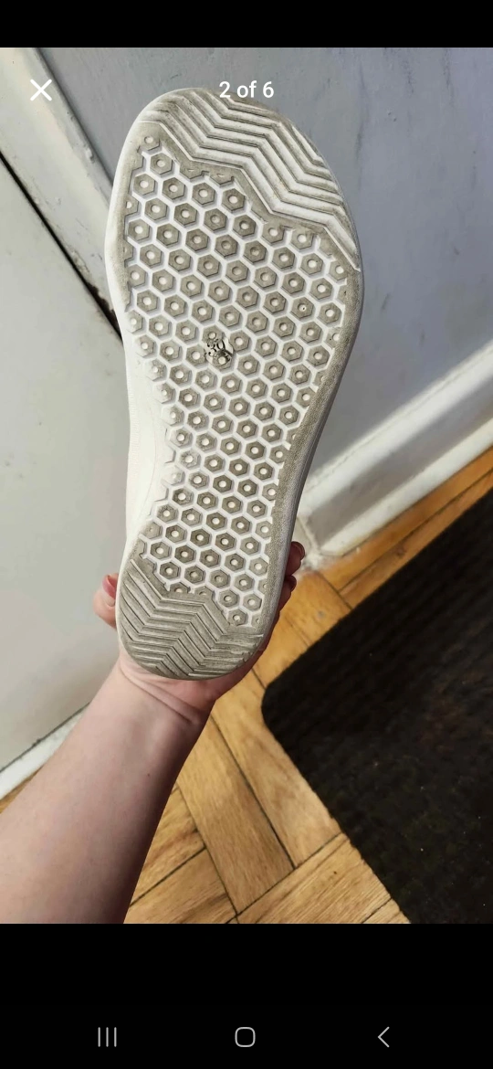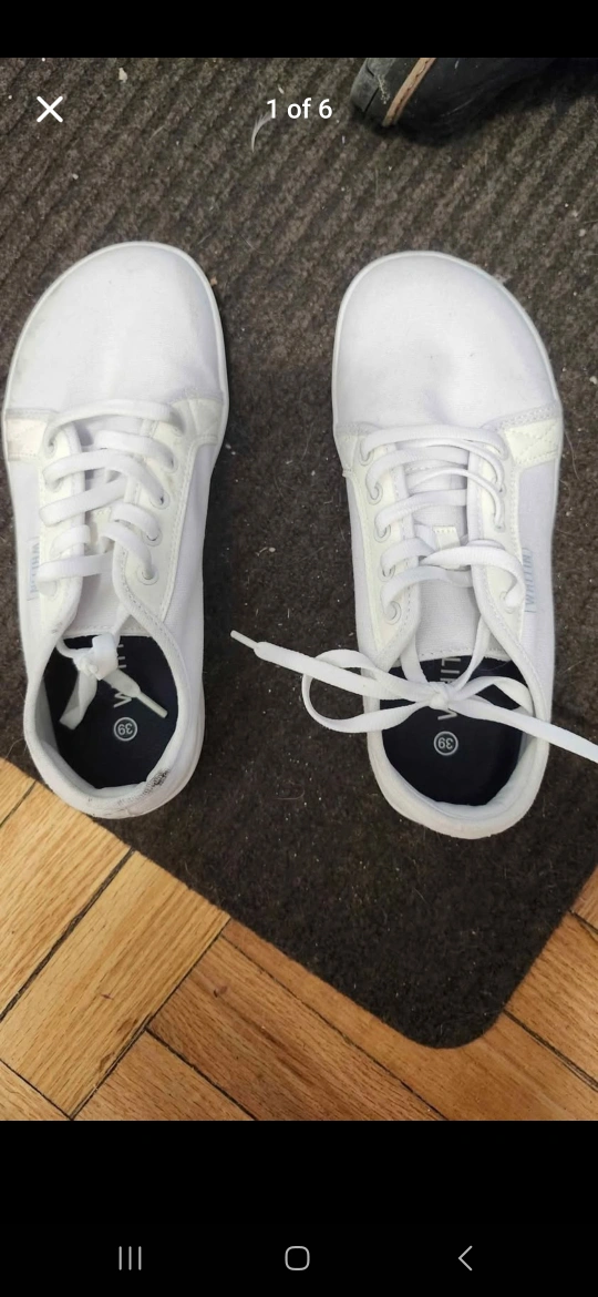 Pre-owned Vivobarefoot Primus Lite II sneakers. White canvas upper. Minimalist design. Some minor scuffs and marks. Size 38.