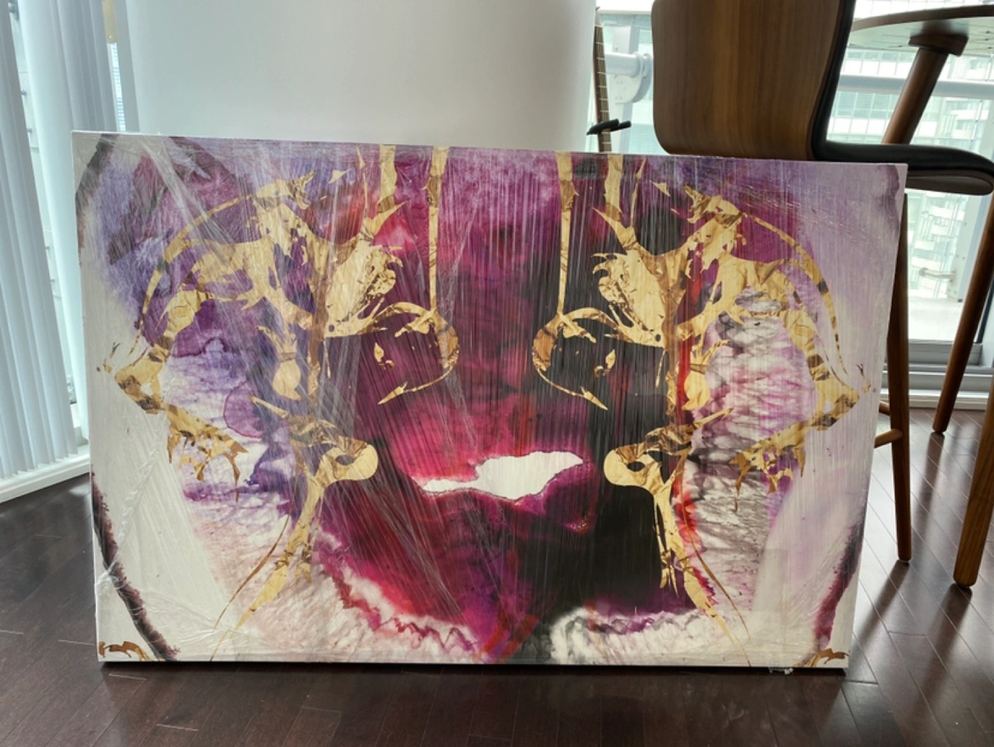 Statement piece canvas wall art. Big in size, dimensions 46” W x 31” H (wrapped in plastic in the photo, ready for pick up!)