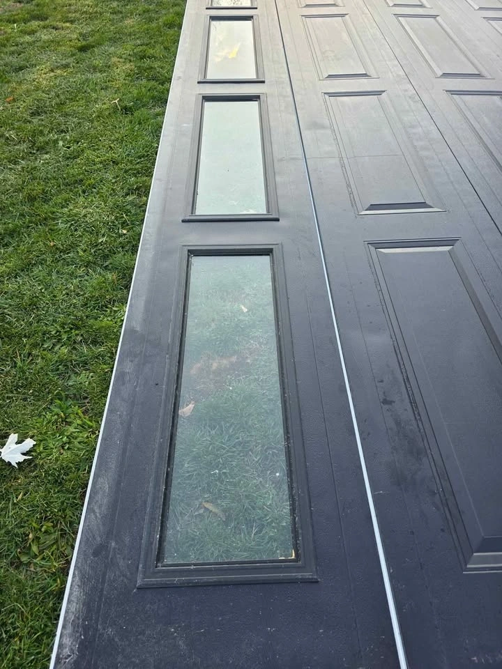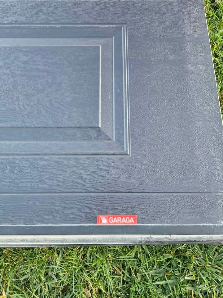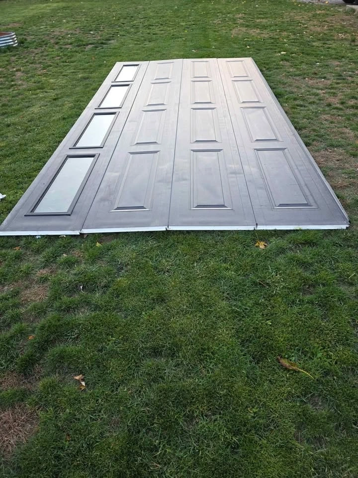 Used 16x8 garage door (16ft wide by 8ft high) made in Canada by Garaga. Black, polyurethane insulated R12 with single pane clear windows. Door has delamination (bubbling) and probably a couple scratches. $800 for door only with no hardware. $1000 for door with all hardware, tracks, springs etc. Aluminum frame capping available for extra. Pick up in St. Williams area.