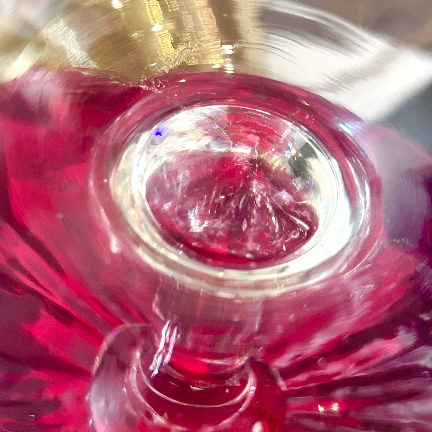 cranberry glass, gold ruby glass, studio art glass, pedestal compote, tazza bowl, hand blown glass, pontil mark, mid century modern, MCM decor, hollywood regency, sculptural glass, red art glass, ombre glass, centerpiece bowl, fruit bowl, candy dish, vintage glass, collectible glass, 20th century glass, art glass bowl