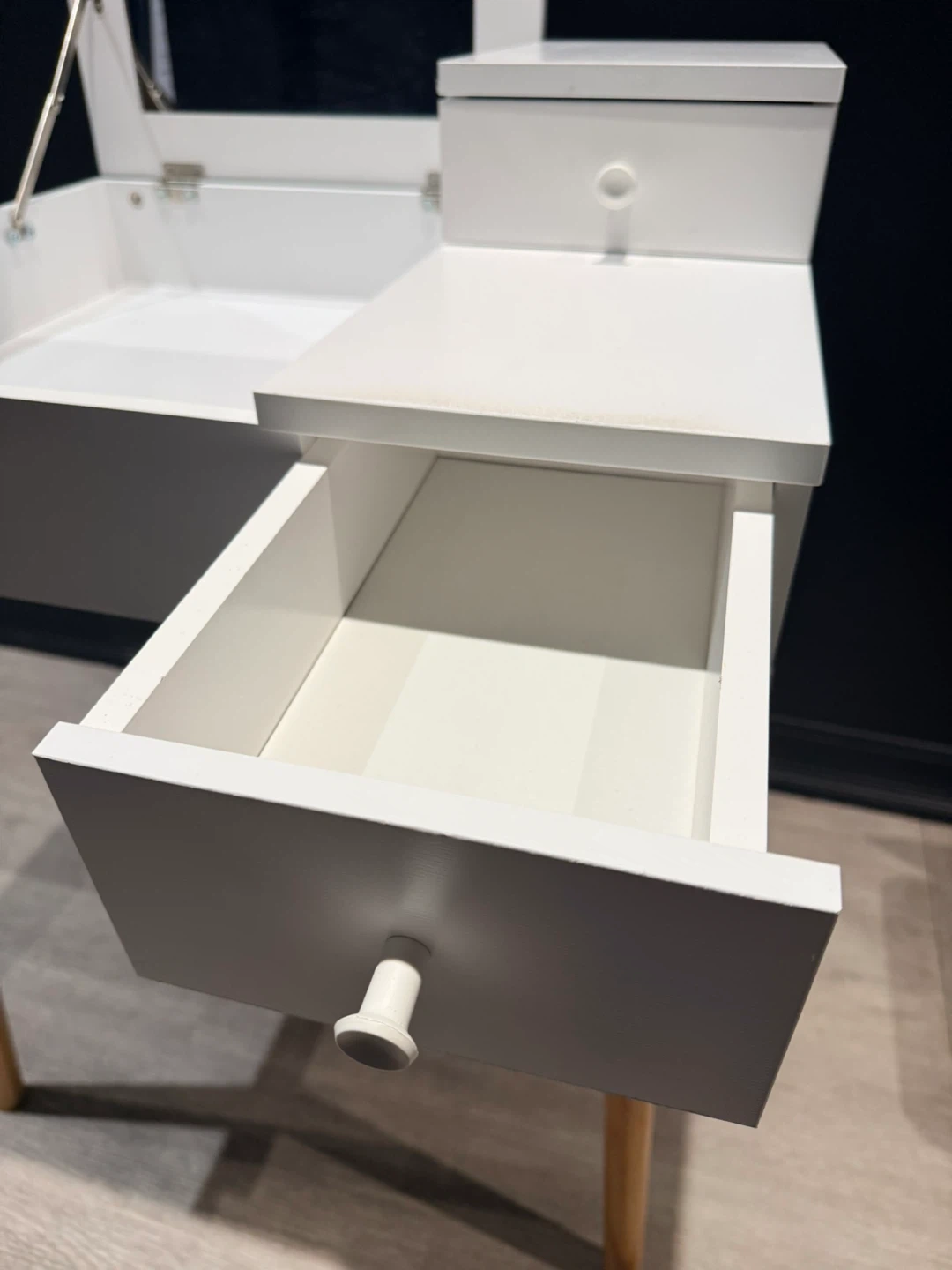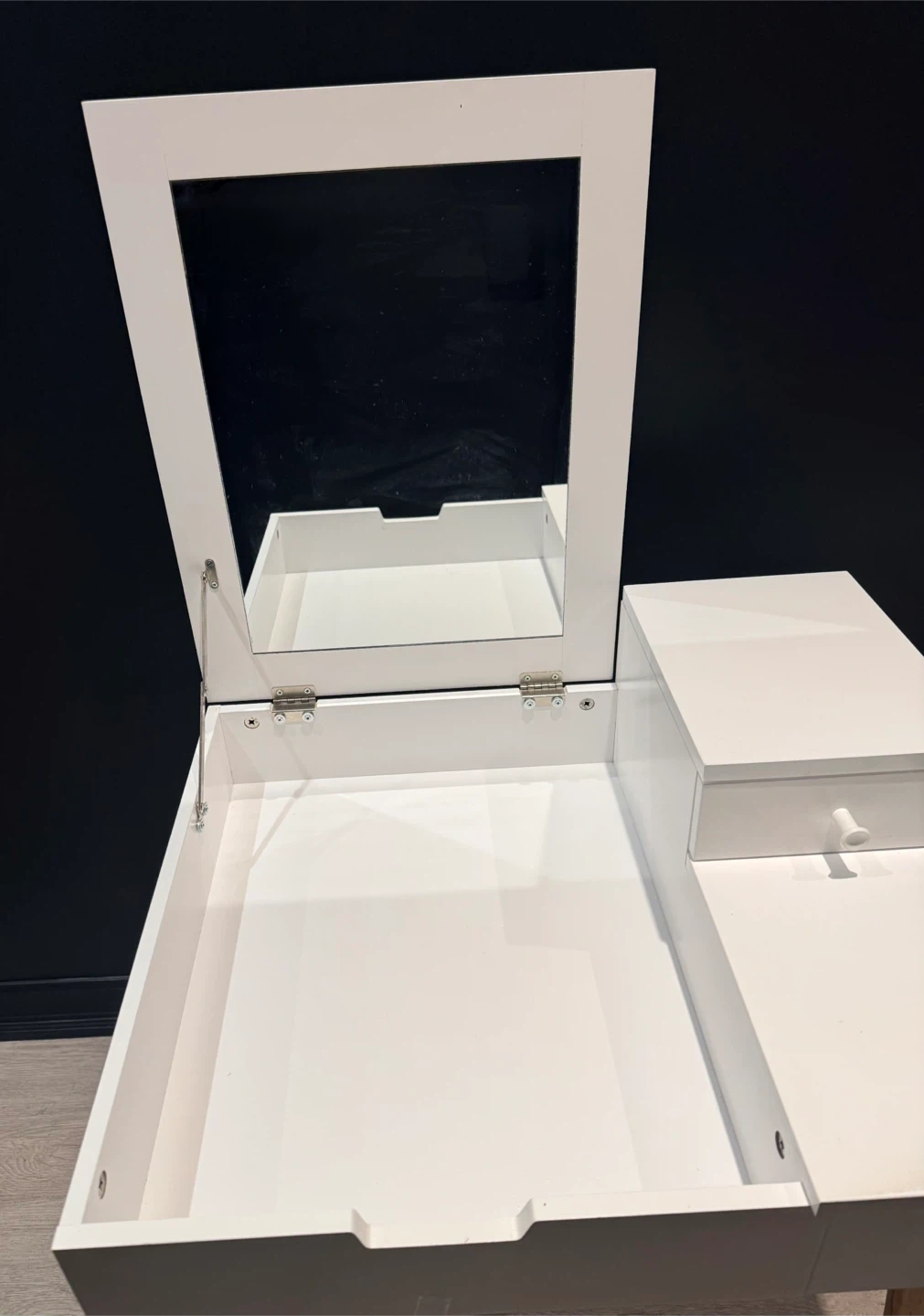 White Vanity Desk with a flip-top mirror