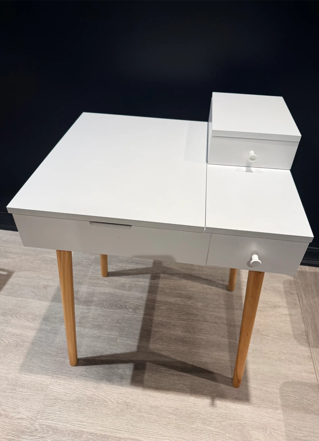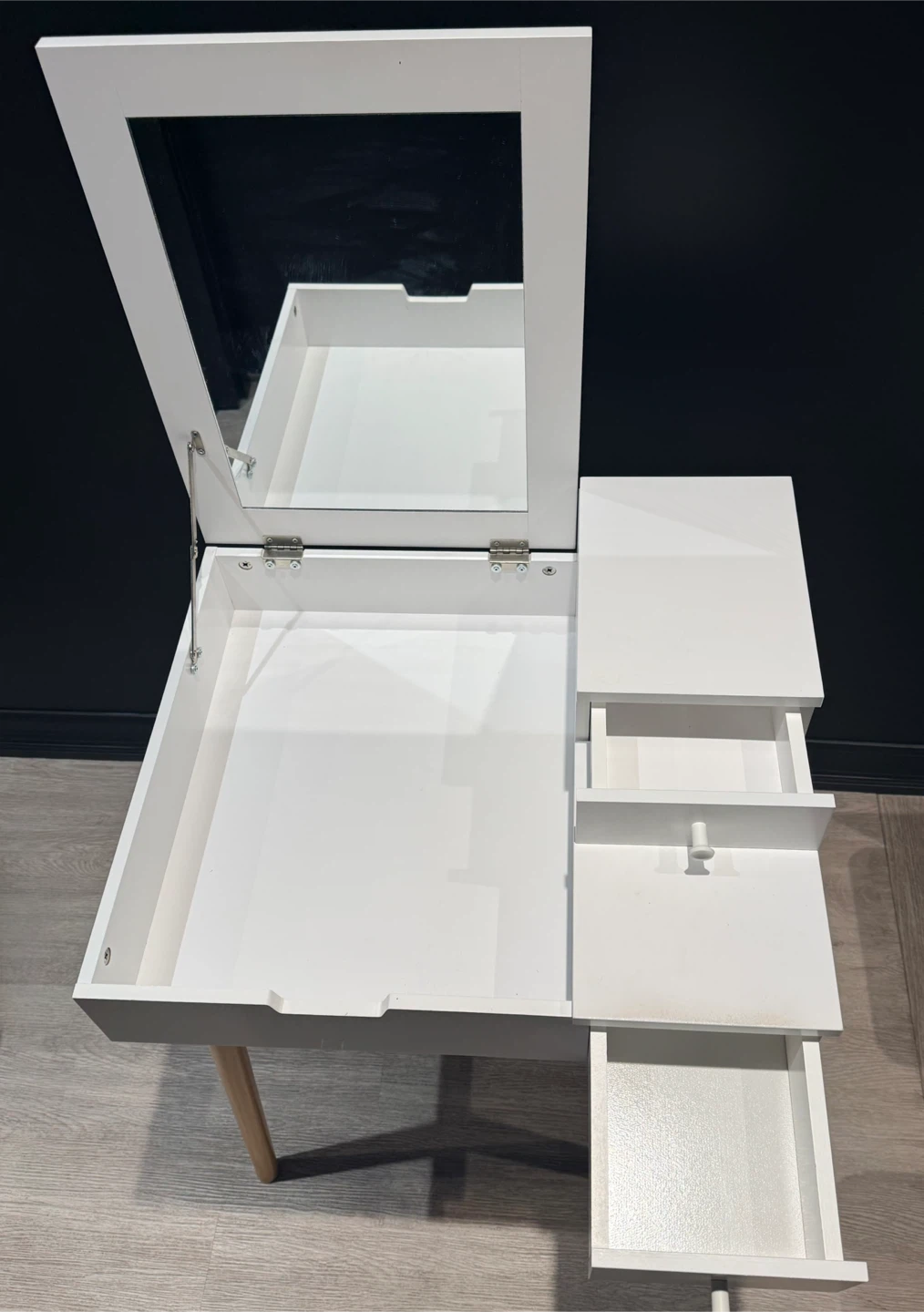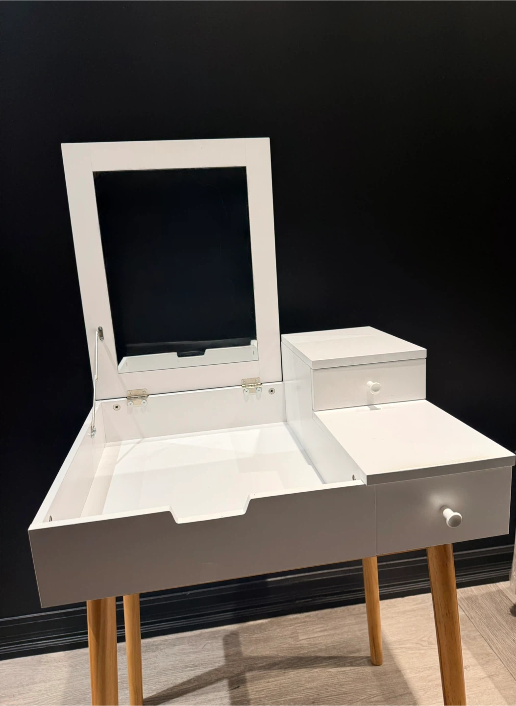 White Vanity Desk with a flip-top mirror