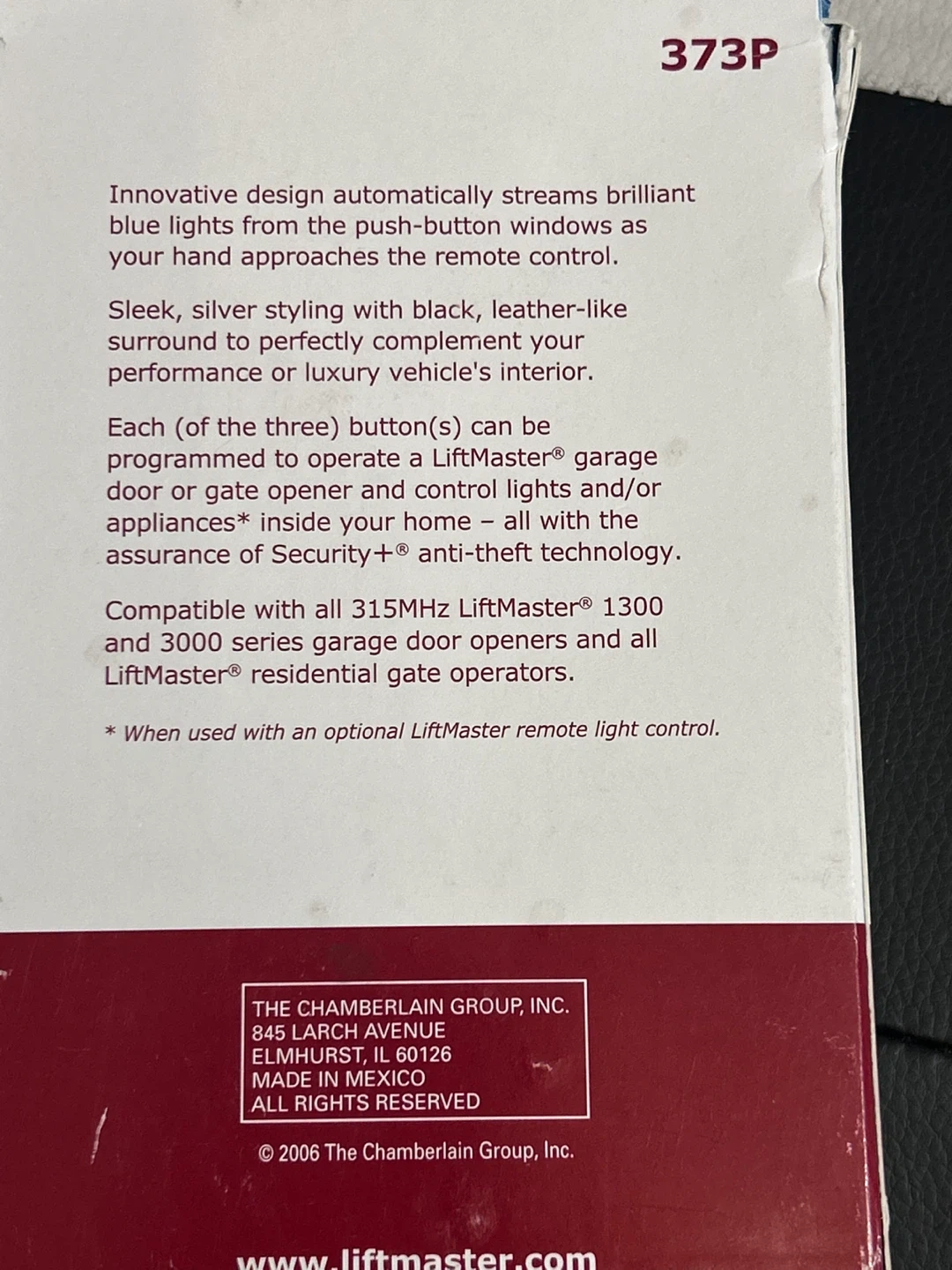 - Compatible with all 315MHz LiftMaster 1300 and 3000 series garage door openers and all LiftMaster residential gate operators