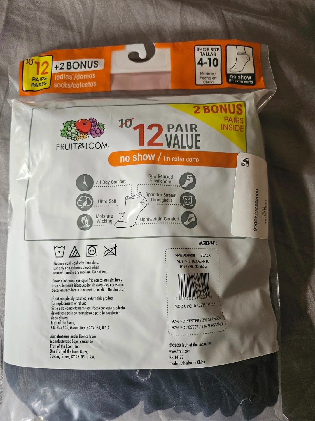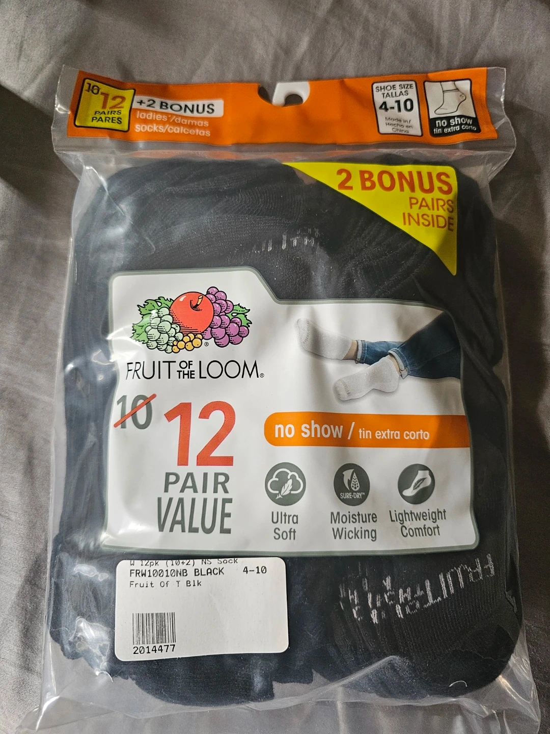 Get amazing value with this 12-pair pack of Fruit of the Loom ladies' no-show socks. They're designed for all-day comfort with ultra-soft fabric and moisture-wicking properties. These socks feature a spandex stretch for a secure fit. Perfect for everyday wear when you want a seamless look.