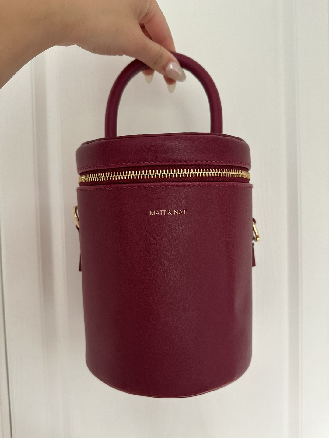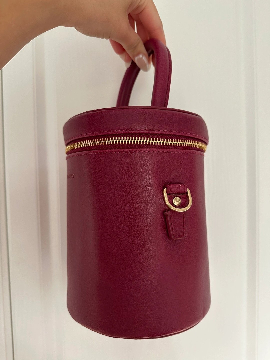 Beautiful magenta/purple leather bucket bag. Perfect condition, no scrapes, scratches or scuffs. Clean interior. Very spacious. Comes with strap. Zipper around as seen. Limited edition colour. Purchased last year for $140. OBO