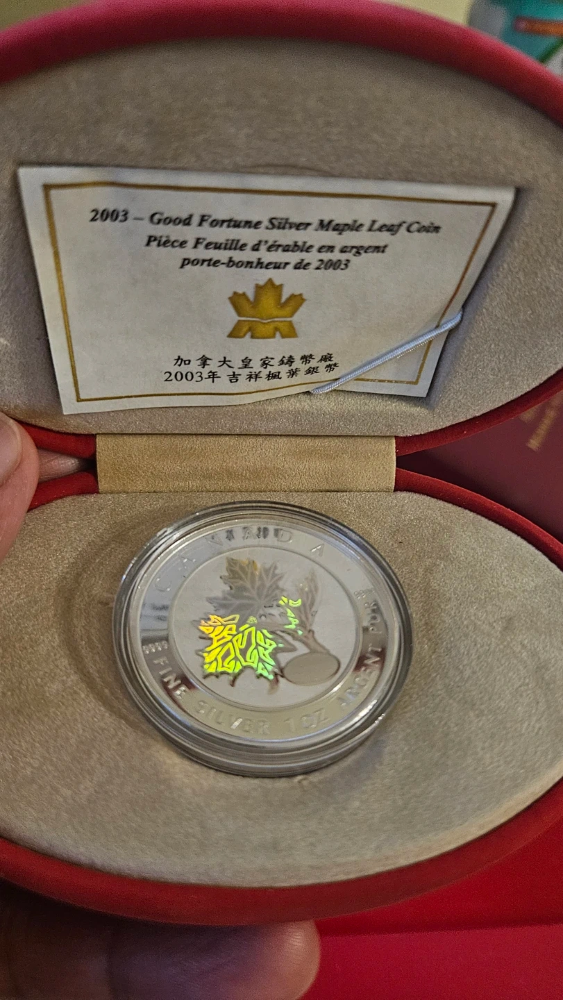 Buy & Sell2003 Good Fortune Silver Maple Leaf Coin2003 Good Fortune Silver Maple Leaf Coin$70Selling a 2003 Good Fortune Silver Maple Leaf Coin! It comes in its original box, ready for a new collectorWHERE TO MEETCheck LocationView MapSELLERverifiedRyan ellisWest Hill1268 reviews3 chats·2 favorites·33 viewsSEND CHAT TO SELLERHi Ryan ellis! I’m interested in your listing.Hi Ryan ellis! I’m interested in your listing.Get the Karrot app to chatSign In to chat