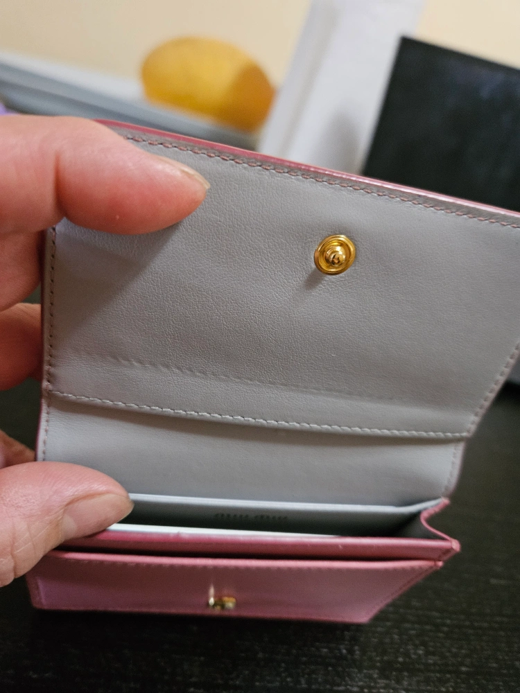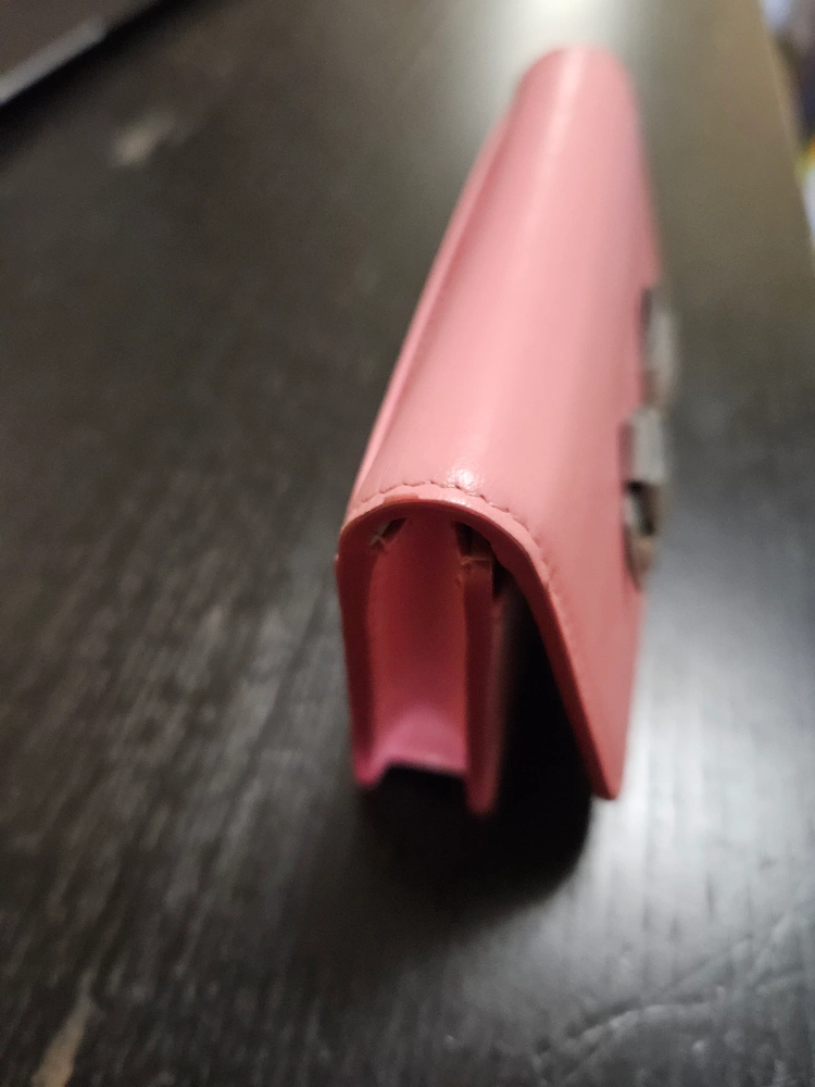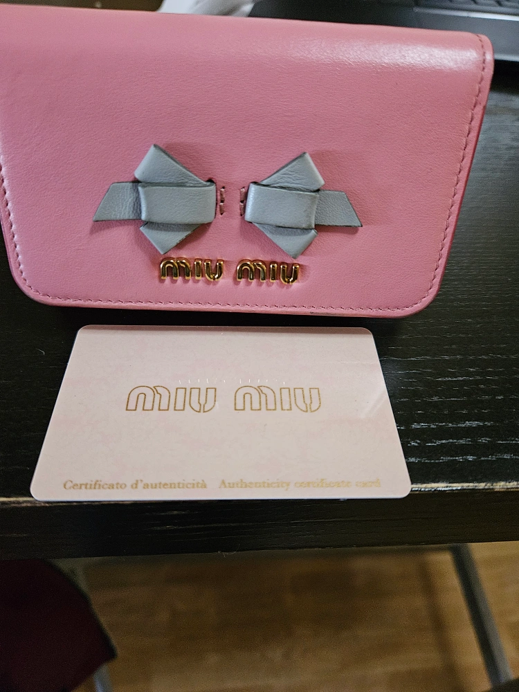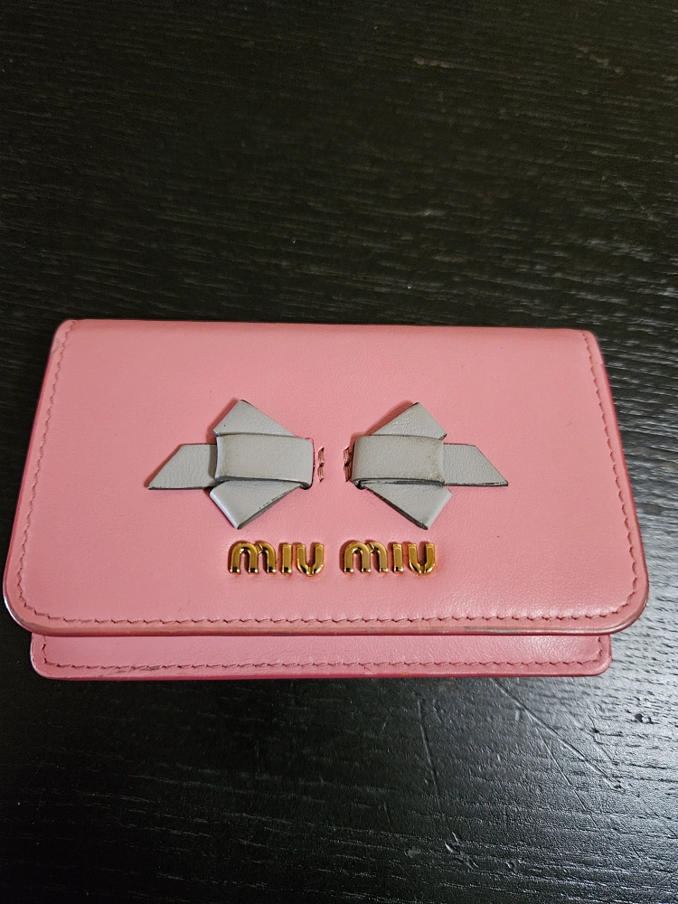 very nice color = pink / leather card with bow details and gold hardware. can hold with many cards ÷ up to 10 = good condition. Purchased from second - hand brand store. ****Authentic ****