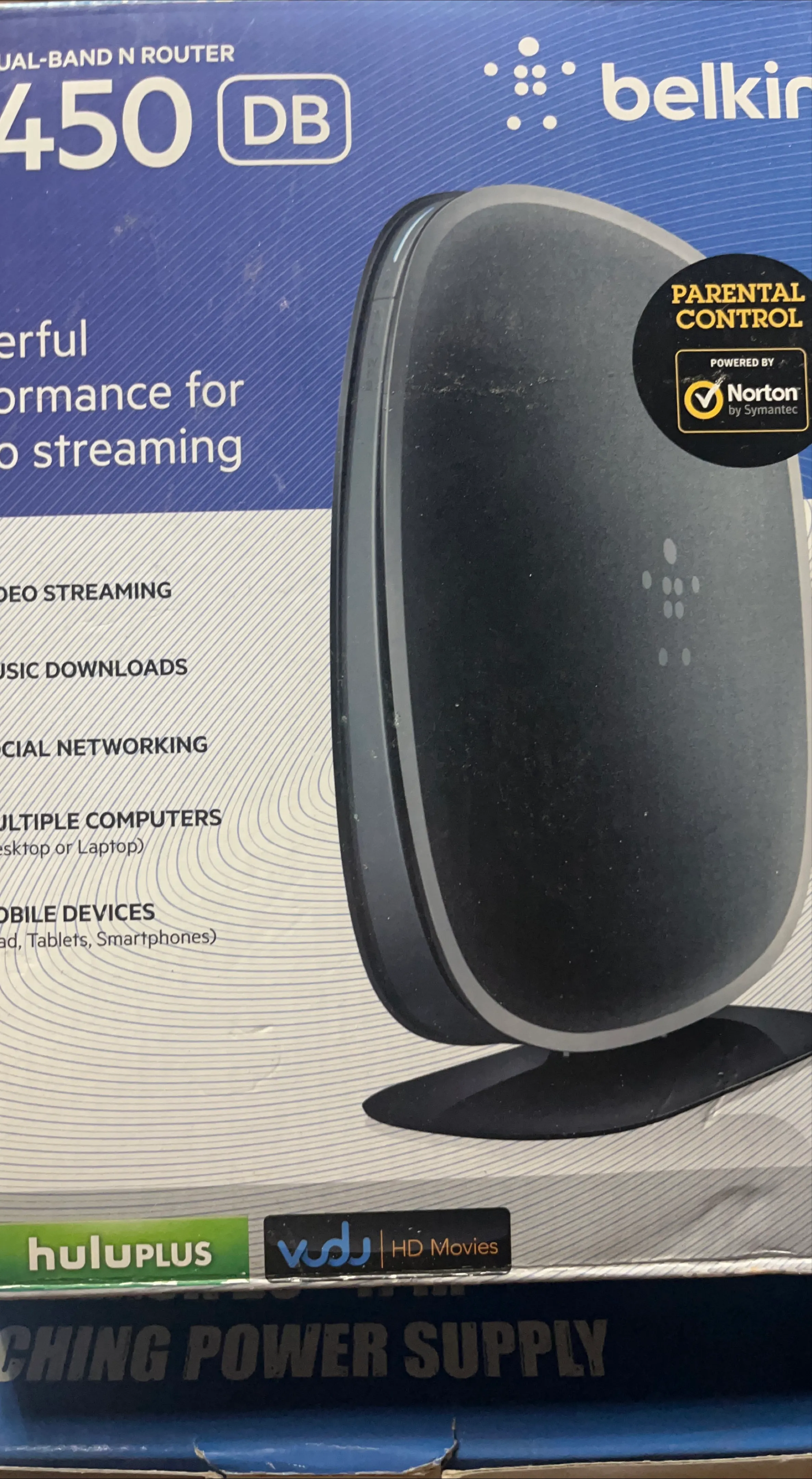 Belkin Dual-Band N Router 450 DB. Supports video streaming, music downloads, and social networking. Connects multiple computers and mobile devices. Parental controls powered by Norton by Symantec.
