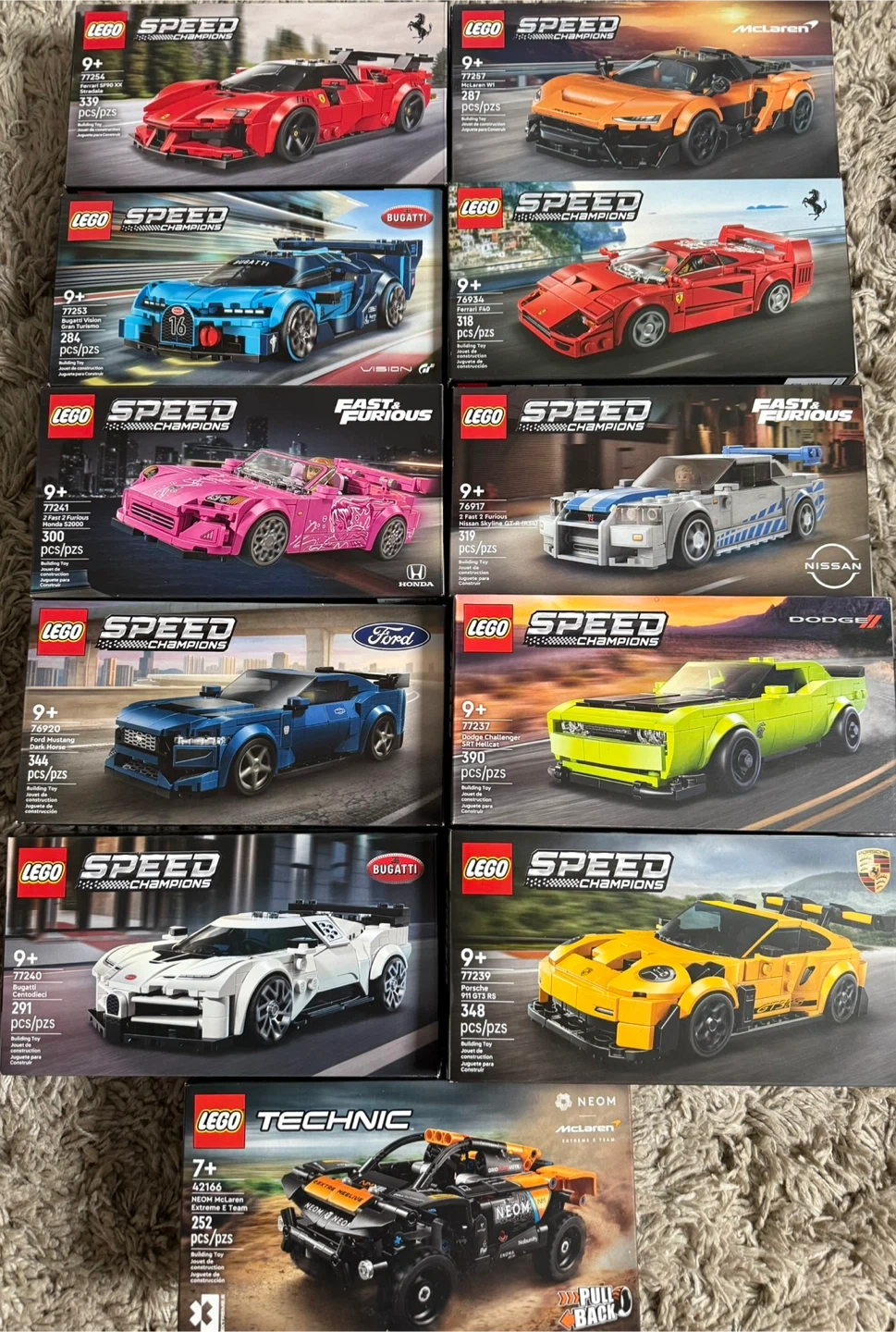Collection of LEGO Speed Champions Formula 1 race cars, featuring McLaren, Aston Martin, Mercedes-AMG, and Williams Racing models. These sets offer detailed building experiences for fans of motorsport and LEGO. Great for display or play! 25$ each - price firm