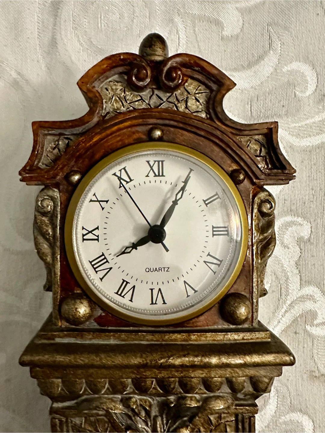 Here's a wooden decorative quartz table clock. It's in great condition and would look lovely on a desk or shelf. The clock has a classic design with Roman numerals. $30 OBO