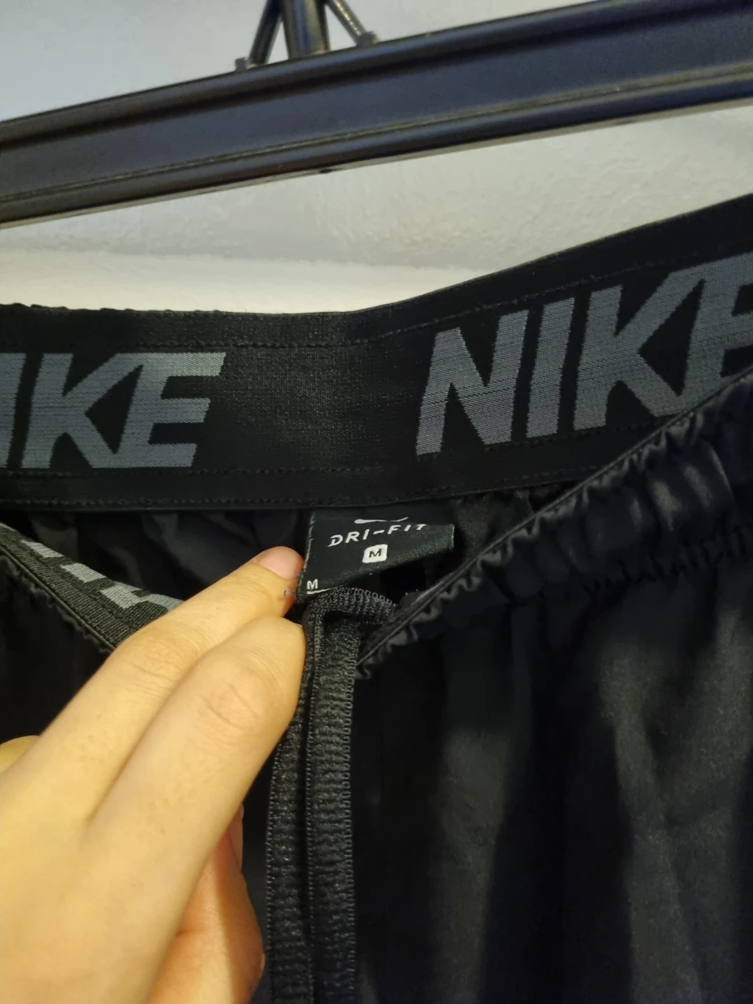 These are Nike Dri-FIT running shorts in black. They're a size medium with an elastic waistband and drawstring.